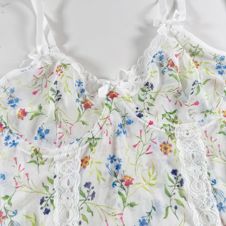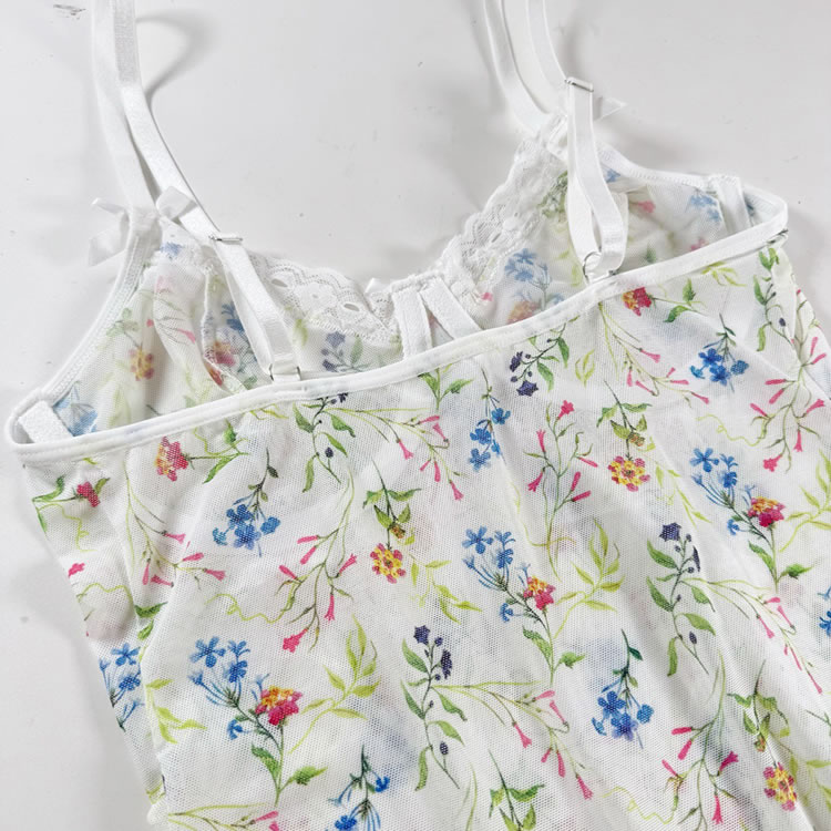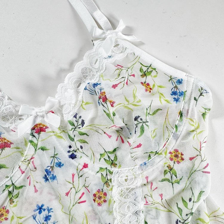 Elevate your intimate wardrobe with this elegant floral lace lingerie set. The chemise features a beautiful floral print on a sheer fabric, enhanced by lace trim that adds a sophisticated touch. The adjustable spaghetti straps and sweetheart neckline ensure a comfortable and flattering fit. The side ties with bows offer a customizable look, making it ideal for both everyday comfort and romantic evenings.