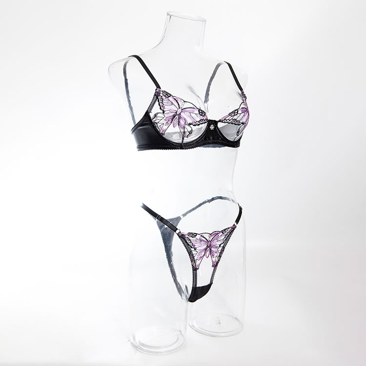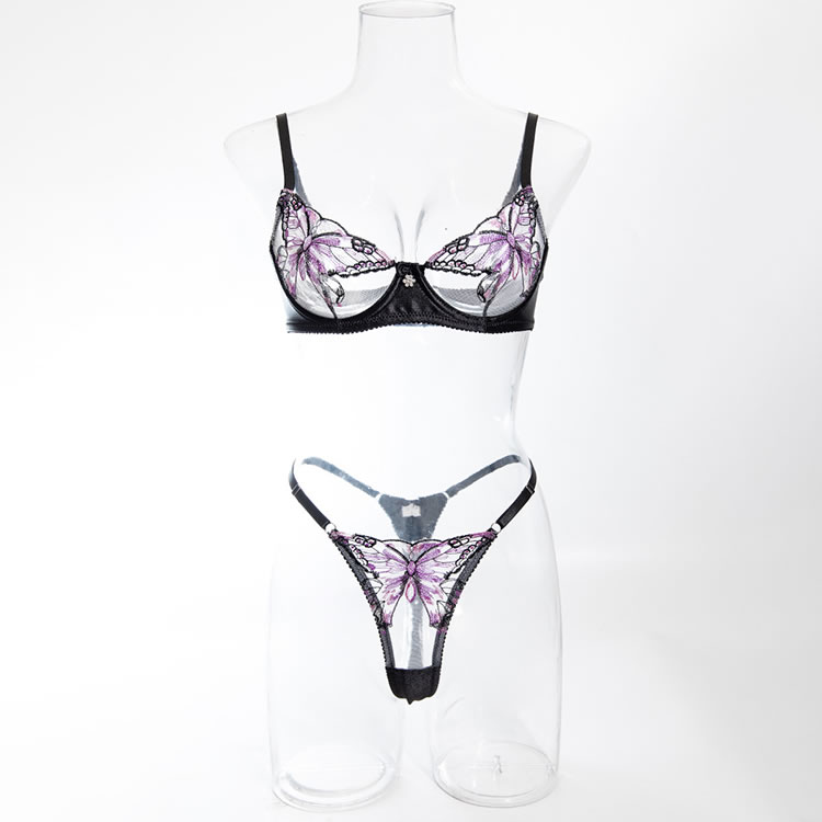 This lingerie set features a captivating butterfly design that adds a whimsical touch to your wardrobe. The intricate embroidery on the bra and thong creates a stunning visual effect, while the soft fabric ensures a comfortable fit. Perfect for adding a playful yet elegant vibe to any occasion.