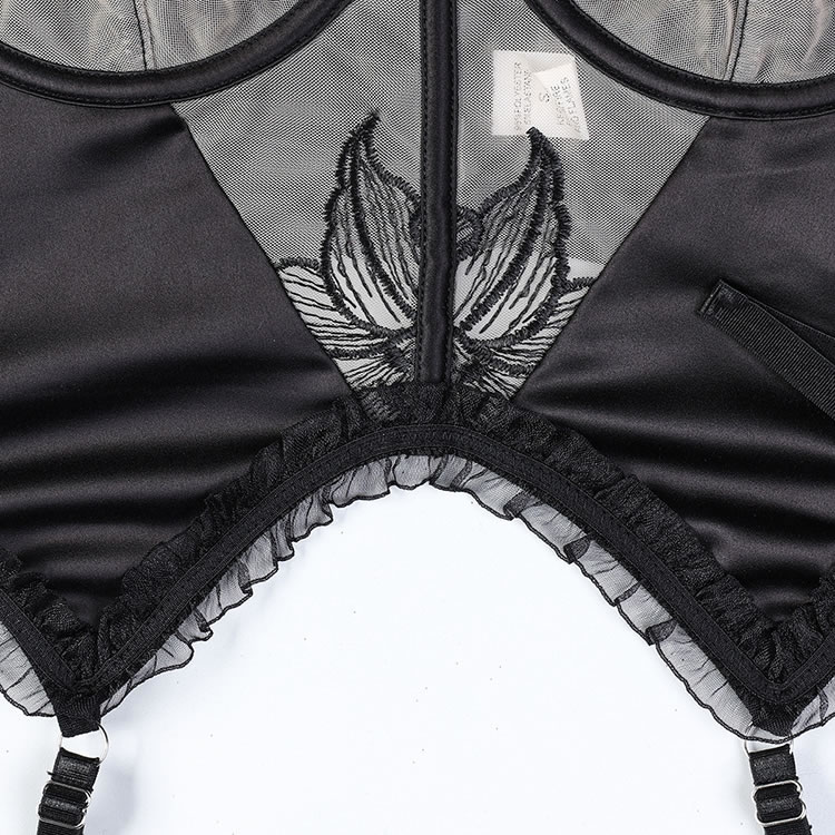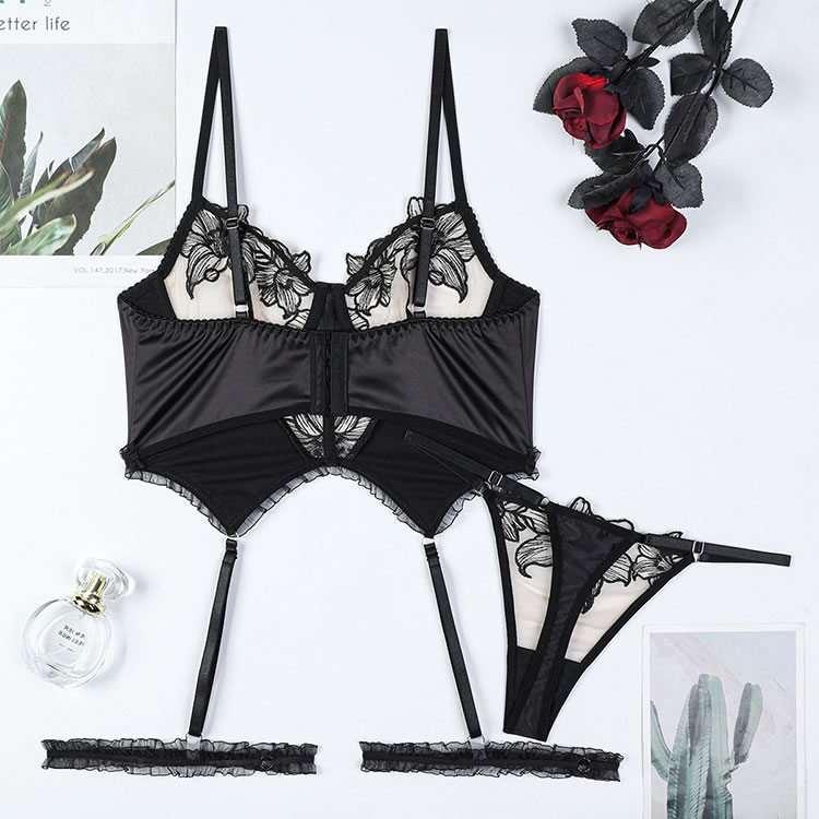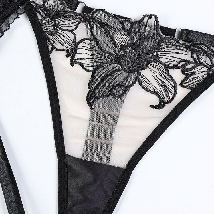 Indulge in the seductive allure of our Black Lace Bra and Panty Set with Garter Belts. Crafted from soft and delicate lace, this set features a plunging neckline bra with adjustable straps, ensuring a perfect fit. The matching low-rise panties are adorned with intricate lace details and a cute bow accent. Complete the look with the included garter belts, perfect for adding a touch of sensuality to any outfit. Whether for a special occasion or a night in, this set will make you feel confident and alluring.