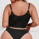 This plus-size lingerie set features a bold black design with intricate lace detailing on the front of the bra and matching panties. The bra includes a front hook and eye closure for easy wear and structured support, while the high-waisted briefs offer smooth coverage and a flattering fit. Designed to enhance natural curves, this set combines comfort with a touch of drama for everyday confidence or special occasions.