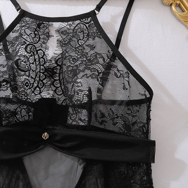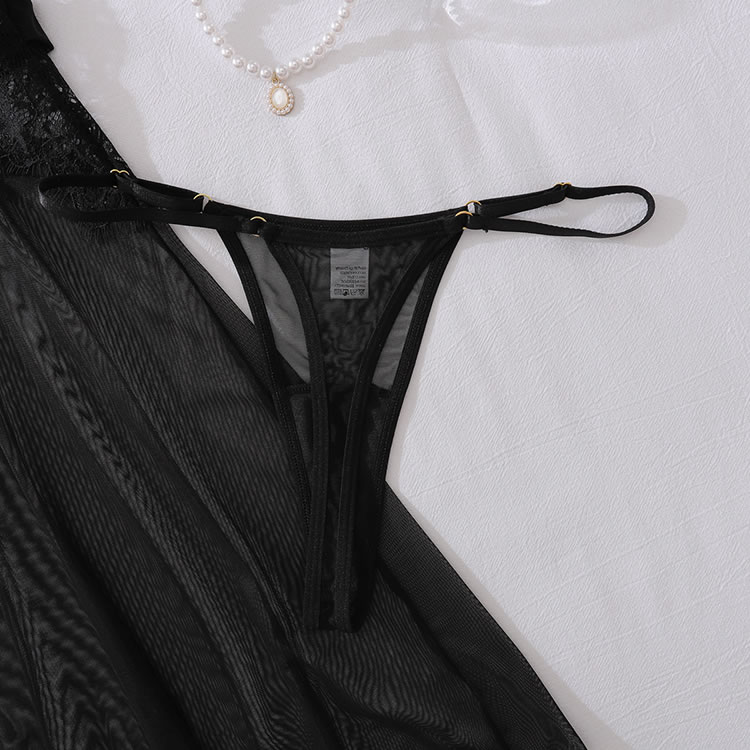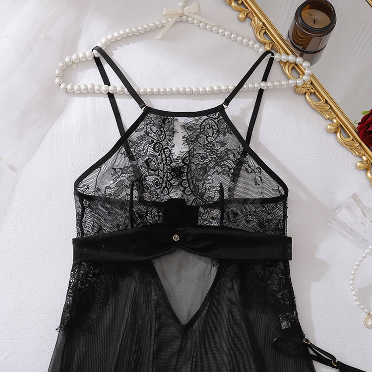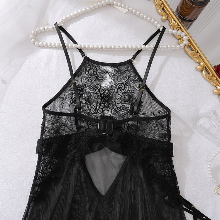 Indulge in romantic allure with this sheer babydoll set, designed to flatter and tease. The chemise features a delicate lace bodice with a sweetheart neckline and a charming bow accent at the empire waist. Flowing sheer mesh fabric creates a soft, A-line skirt that offers a hint of mystery. Complete with matching lace thong underwear, this set is perfect for a special night in, offering a blend of comfort and classic seduction.