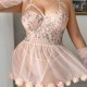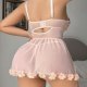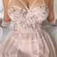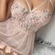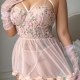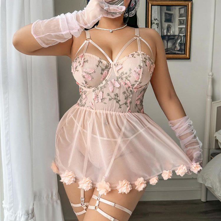 Float into fantasy with this dreamy blush babydoll adorned with 3D flowers and fluttering mesh layers. The crisscross bustier top lifts and flatters, while the attached garters add a teasing touch of vintage glamour. Soft, breathable fabric moves with you — perfect for feeling sweet, sexy, and totally enchanting.