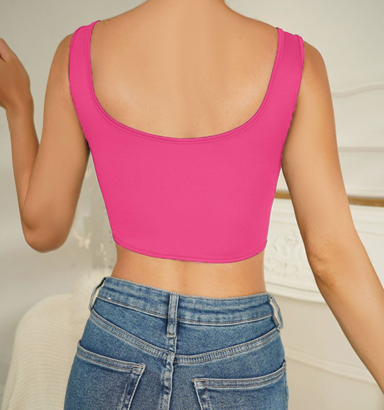 This vibrant rose bustier top features a structured design with a hook and eyes closure front for easy wear. The wide shoulder straps and cut-out sides provide a modern and chic look, perfect for both casual and dressy outfits.
