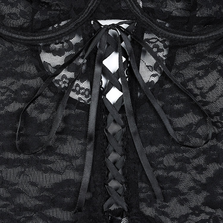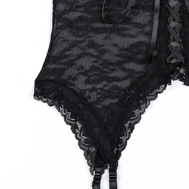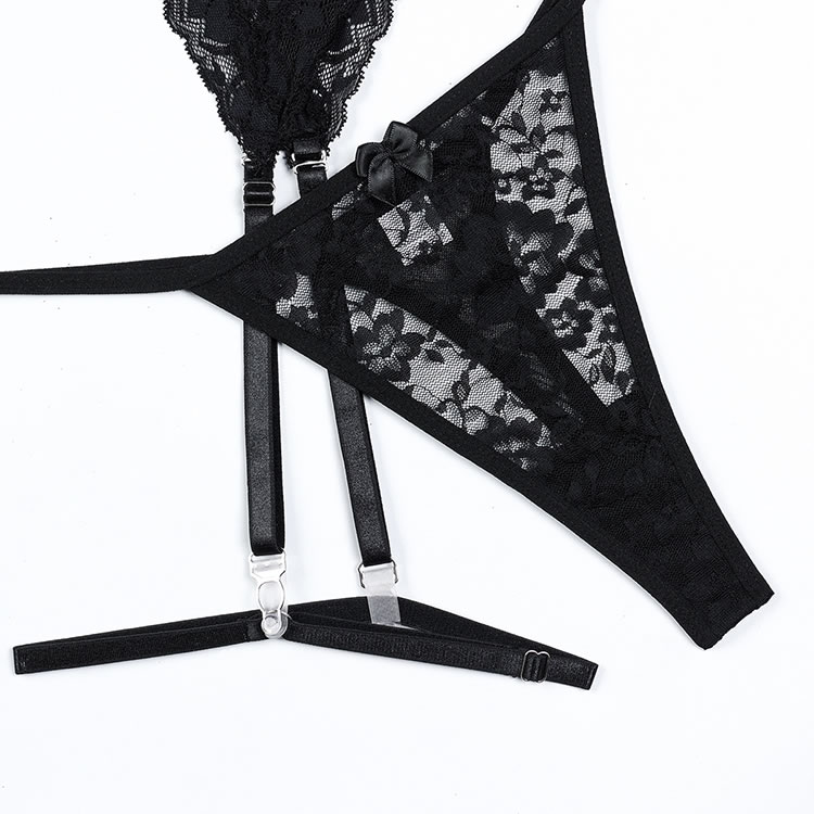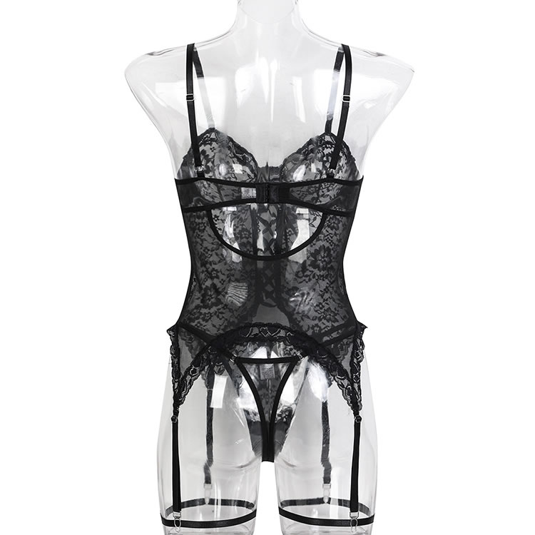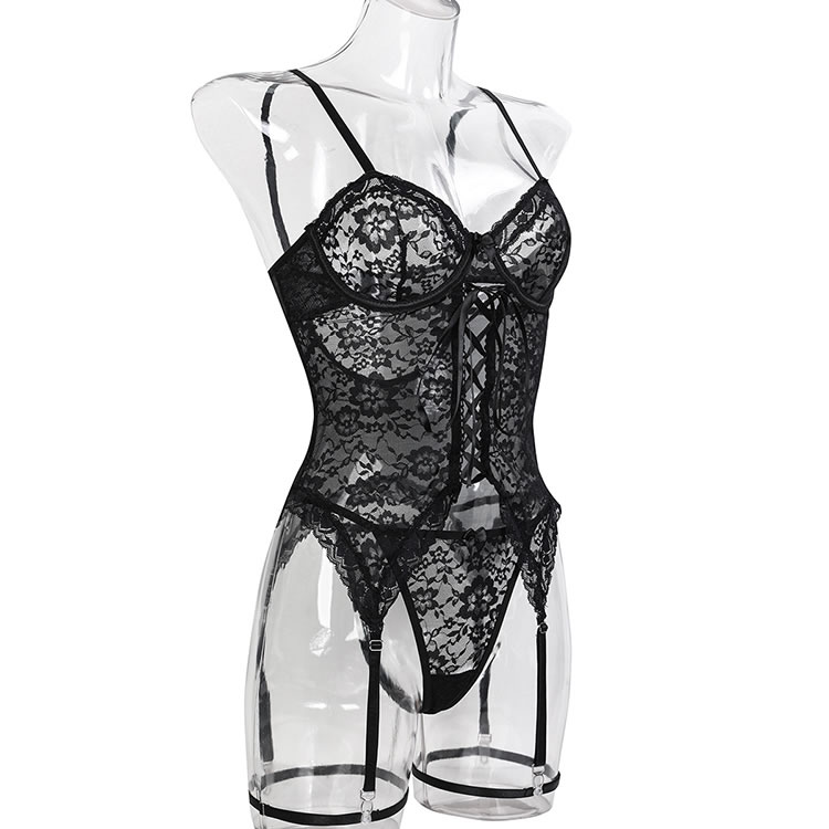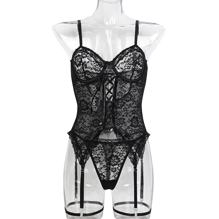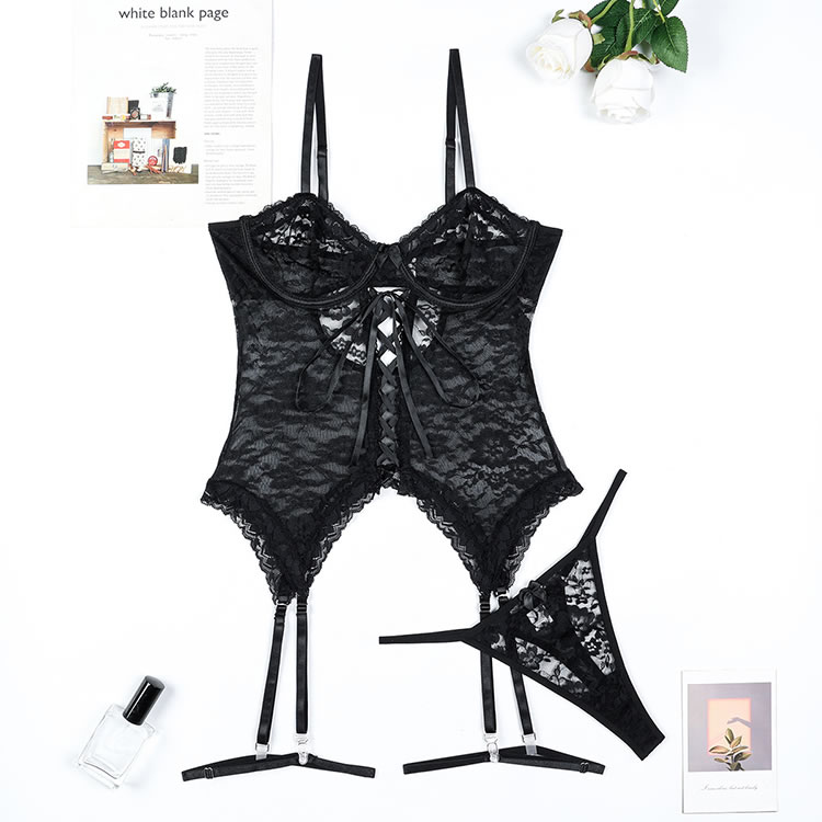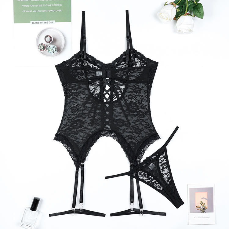 Elevate your style with this bold black lingerie set that boasts an exquisite lace design. The chemises's intricate patterns and elegant cutouts create a captivating and alluring appearance. The soft fabric and supportive structure make it an ideal choice for special occasions or as a trendy addition to your wardrobe.