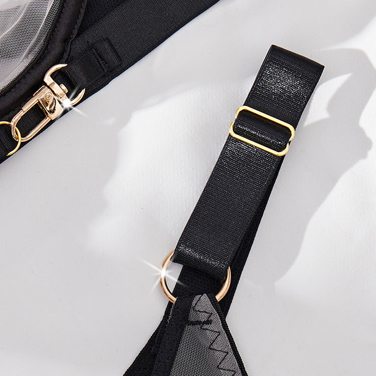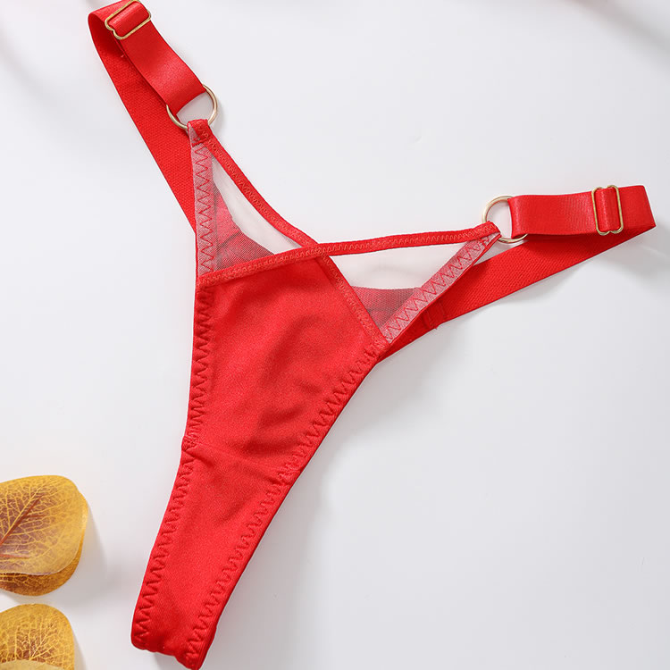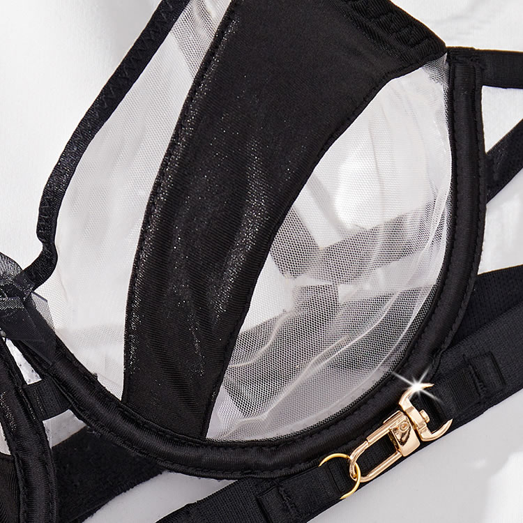 Ignite desire with this captivating mesh bra set. It features sheer underwire cups for a sultry touch, adjustable spaghetti straps for a perfect fit, and a hook and eye back closure for added allure. Complete with a matching thong, this set is designed to tease and tempt, making every moment unforgettable.