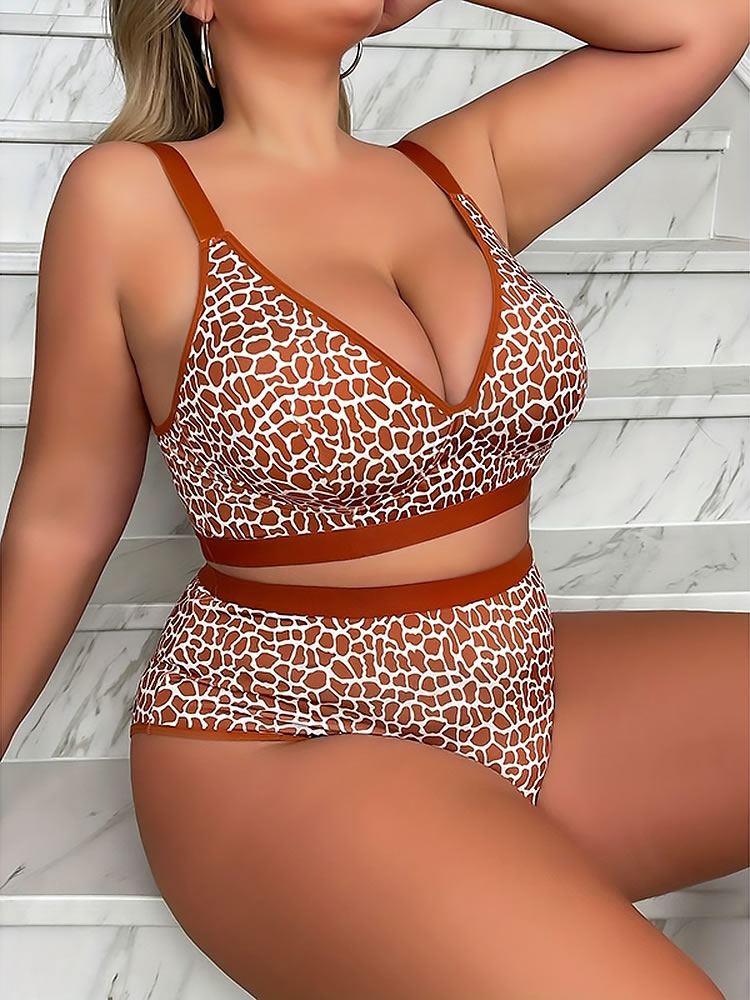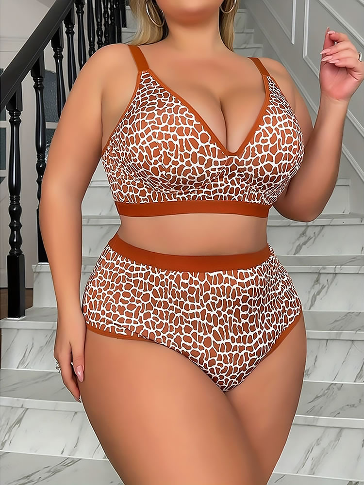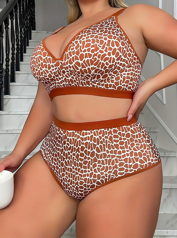 Embrace your curves with this stylish animal print plus size ensemble. The bra showcases a captivating leopard pattern and provides ample support, ensuring comfort throughout the day. The coordinating high-waisted panties enhance your silhouette, making you feel confident and attractive.