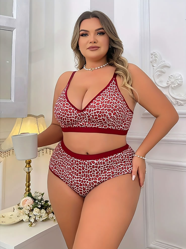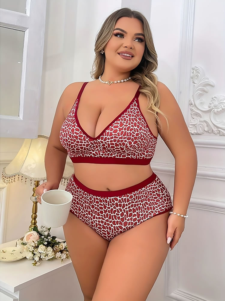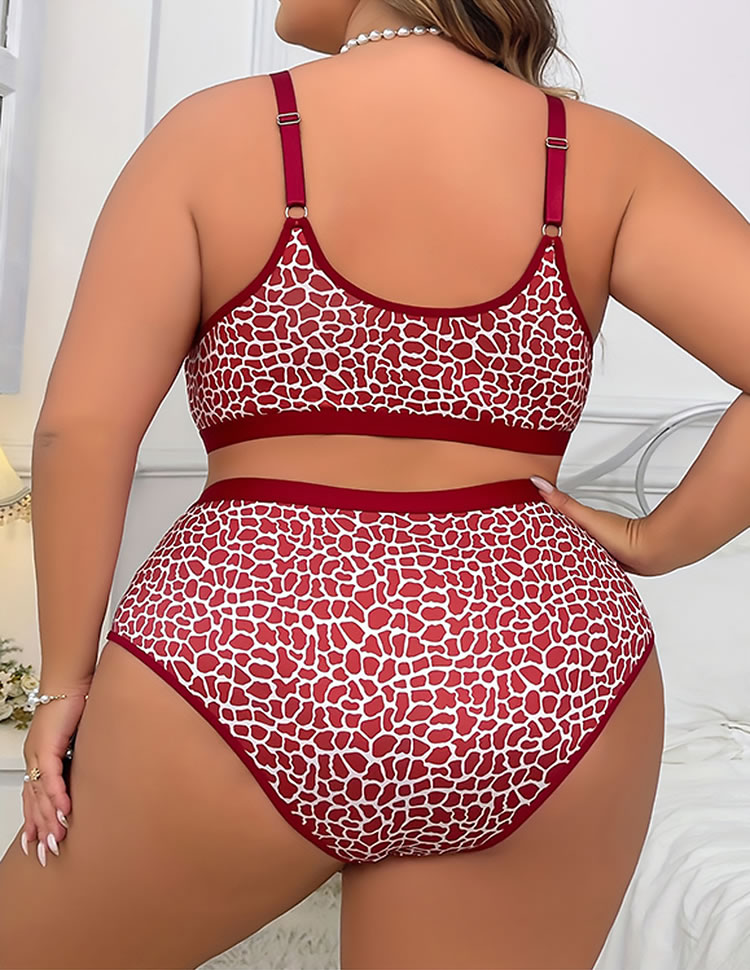 Make a statement with this bold red leopard plus size lingerie set. The striking pattern and vibrant color are sure to turn heads. The bra features adjustable straps for a customized fit, while the matching high-waisted bottoms offer both comfort and support. Perfect for those who want to feel confident and stylish in their intimates.