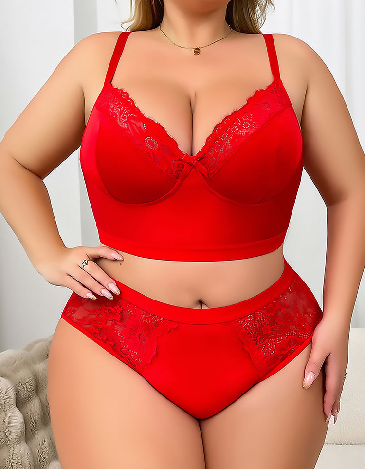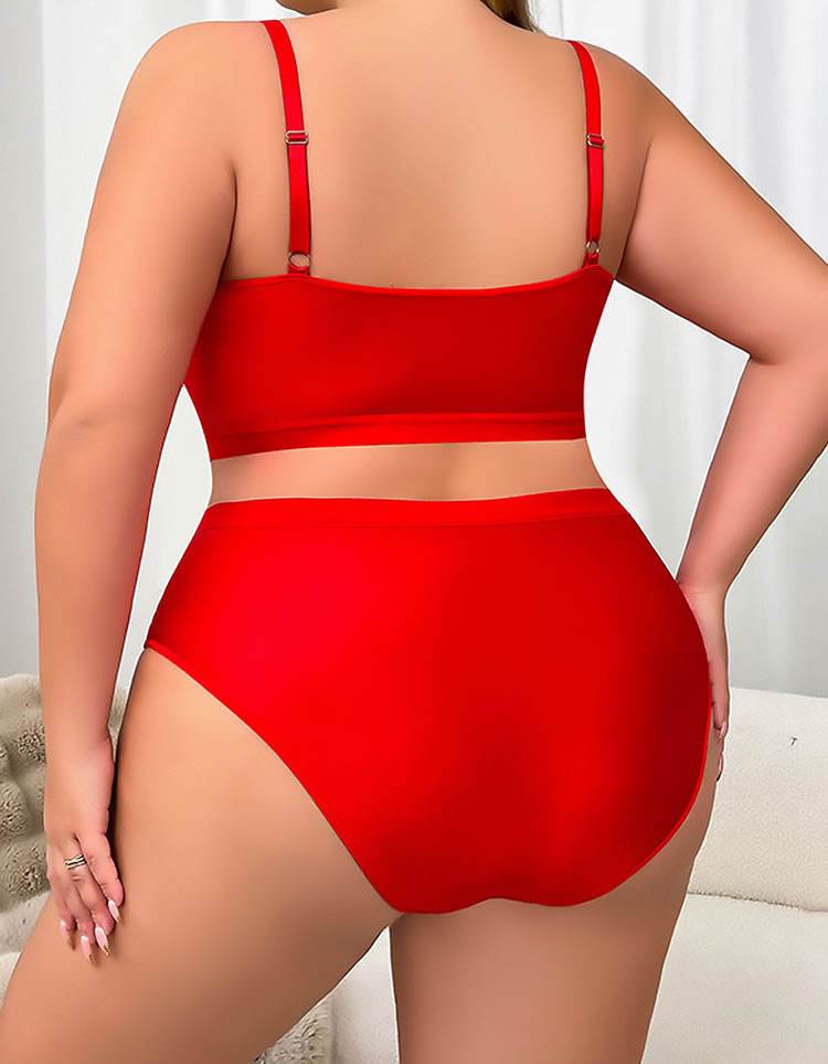 Make a statement with this bold red plus size lingerie set. The vibrant color and sleek design exude confidence and style. The bra features adjustable straps and a supportive fit, while the matching high-waisted bottoms offer a flattering silhouette. Perfect for those who love to feel empowered and stylish in their intimates.