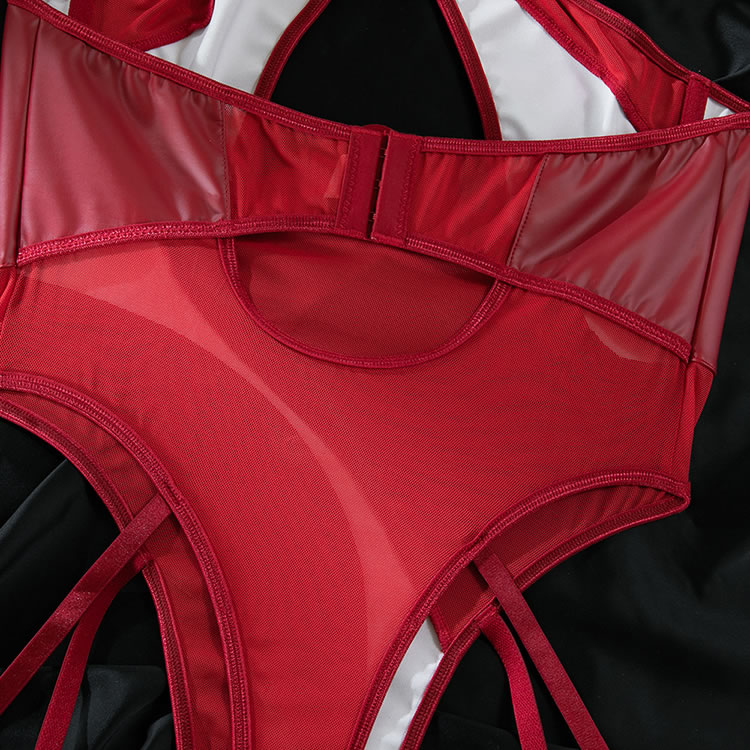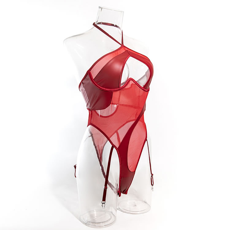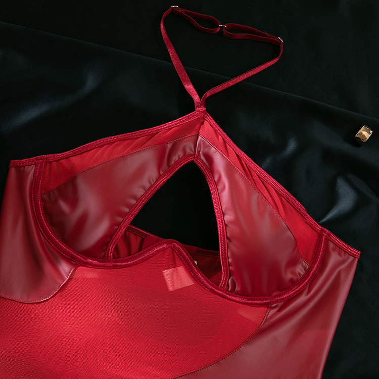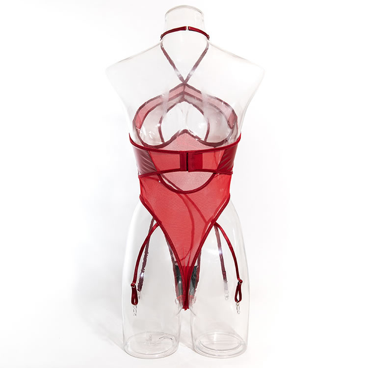 This bold red sheer bodysuit features a striking design with cut-out details that add a touch of edginess and style. The halter straps and fitted silhouette ensure both comfort and a flattering fit, making it perfect for those who want to make a statement in their outfit. Ideal for pairing with high-waisted skirts or pants for a chic appearance.