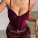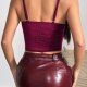 Elevate your night-out look with this striking burgundy bustier top. Designed to accentuate your silhouette, it features a structured bodice with vertical details that create a flattering hourglass shape. The neckline is trimmed with delicate black lace for a touch of feminine edge, while the textured fabric adds depth and interest. Finished with adjustable spaghetti straps, this piece pairs perfectly with the matching faux leather mini skirt or your favorite high-waisted jeans for a bold, fashion-forward statement.