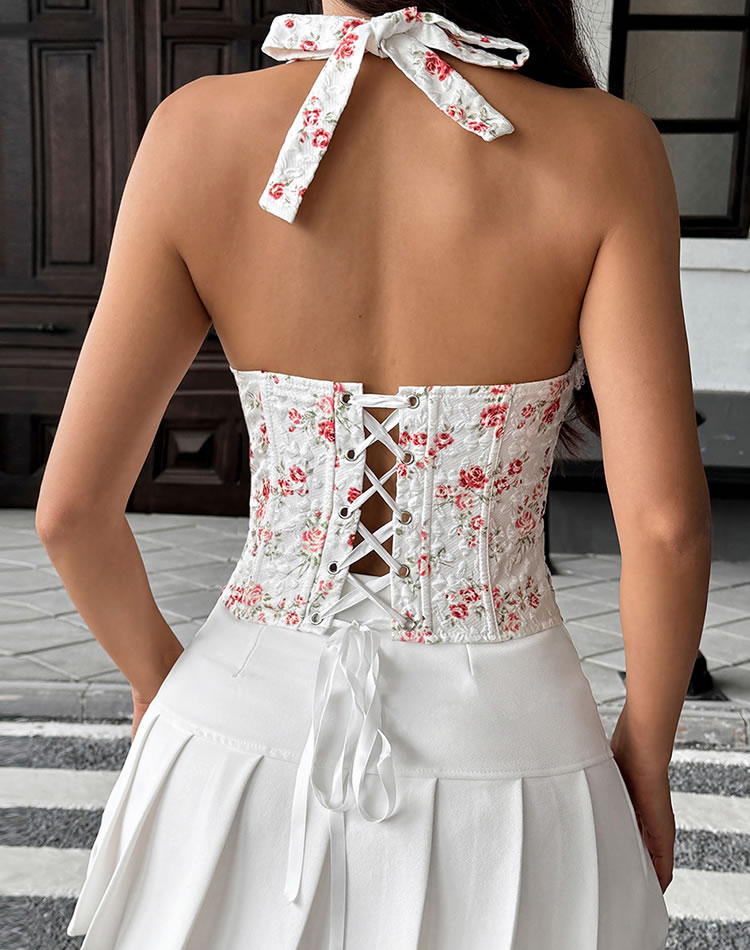 This corset top is a delightful combination of charm and style, featuring a beautiful floral pattern that adds a touch of vintage elegance. The delicate lace trim and adjustable straps ensure a comfortable and personalized fit. Perfect for those who love to add a playful yet sophisticated element to their outfits, it pairs wonderfully with high-waisted skirts or pants for a chic and trendy look.