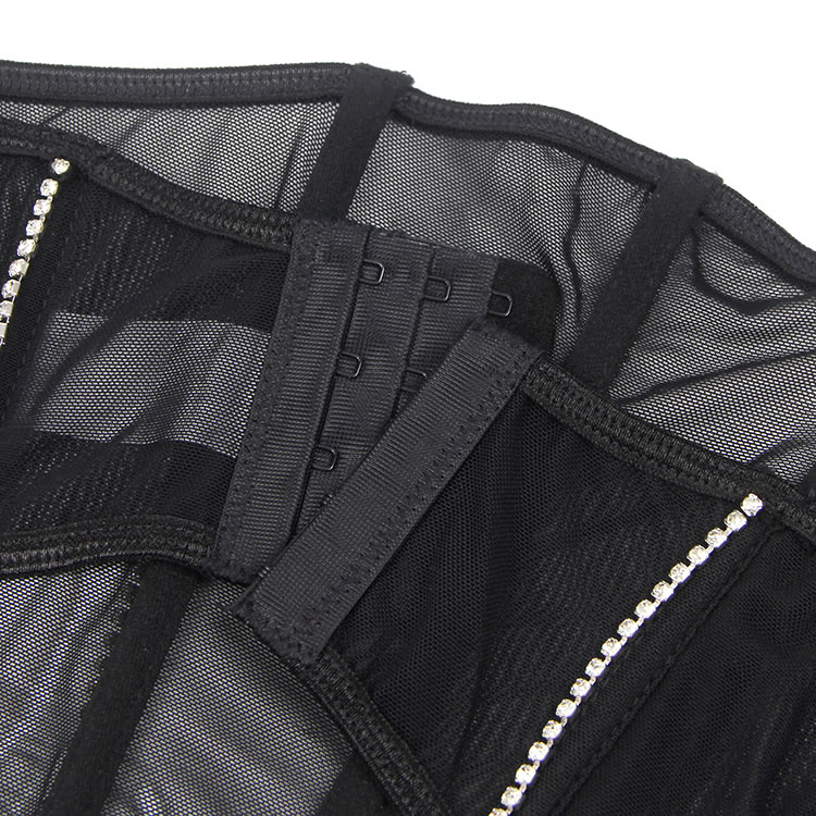 Look hot from every angle in this sultry bra set featuring sheer mesh underwire cups, adjustable spaghetti straps, a hook and eye back closure, a matching waist cincher with built-in boning, a hook and eye back closure, and a matching panty with a cheeky cut back.