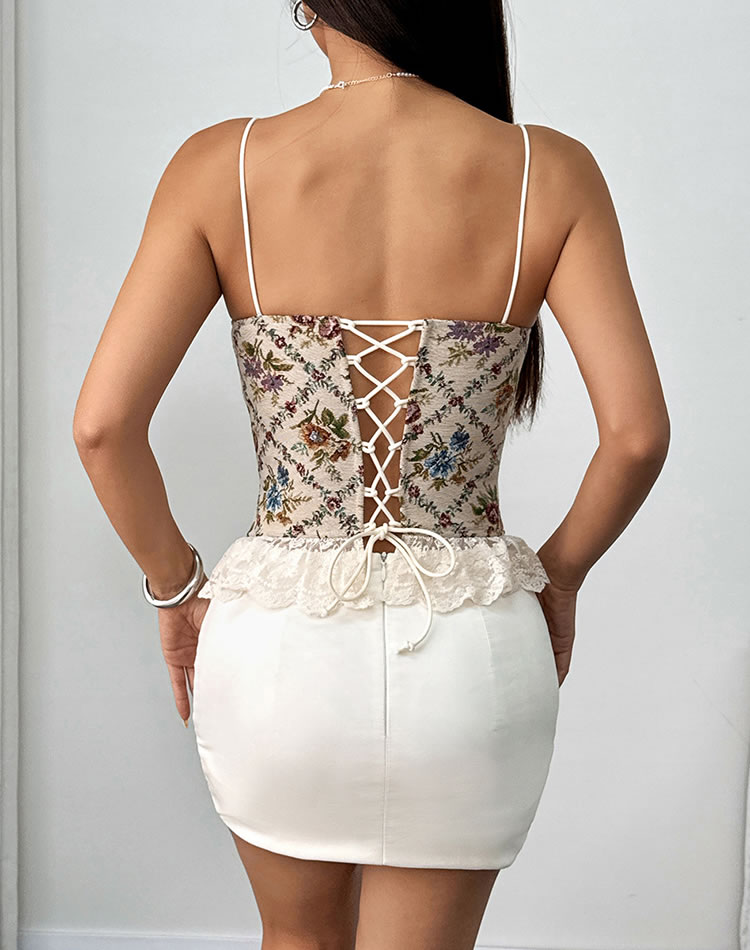 Embrace comfort and charm with this lingerie top. The floral design brings a fresh and lively vibe, while the lace detailing adds a sophisticated touch. The adjustable straps ensure a personalized fit, making it ideal for both lounging at home and adding a playful element to your wardrobe. It's a versatile piece that effortlessly combines style with ease.