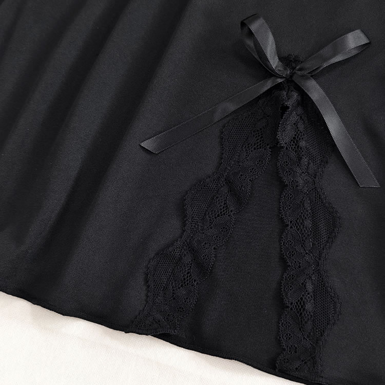 Step into this charming black nightgown that combines sophistication with allure. The delicate lace trim at the neckline and hem adds a playful yet elegant touch. The soft bra support provides added comfort, while the side bow detail gives it a flirty finish. Perfect for adding a touch of romance to your sleepwear collection.