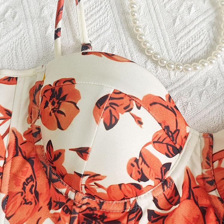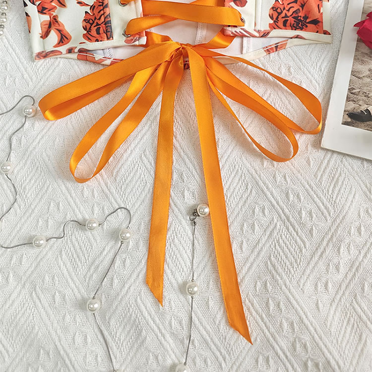 This stunning bustier lingerie set features a vibrant foliage print on a cream background, combining bold colors with a classic silhouette. The sweetheart neckline enhances the décolletage beautifully, while the fitted design accentuates the figure. The adjustable straps ensure a comfortable and customizable fit, making it perfect for both intimate moments and stylish outings. The combination of intricate foliage patterns and a sleek silhouette ensures you feel confident and alluring.