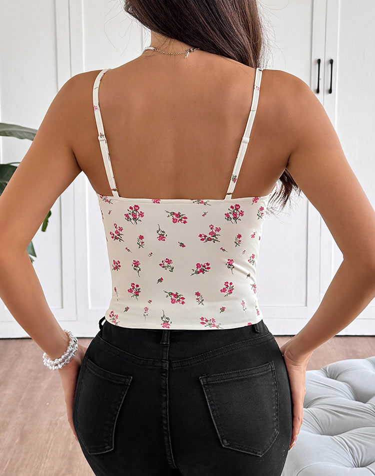 This charming floral corset features a delicate pattern of small pink flowers on a cream background, creating a fresh and feminine look. The lace-up front adds an element of intrigue and allows for a customizable fit. Perfect for adding a touch of romance to your outfit, this corset pairs beautifully with jeans or skirts for a versatile style.