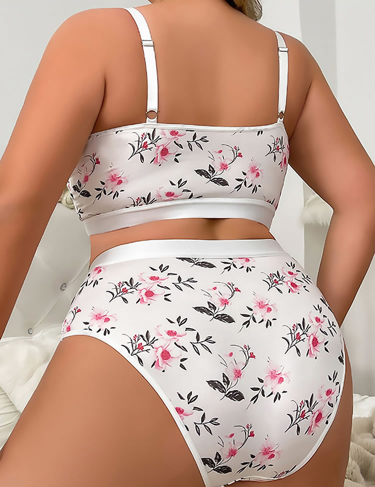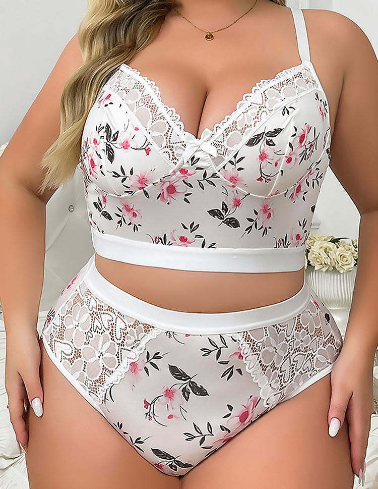 Elevate your lingerie collection with this charming floral plus size set. The delicate lace trim and soft fabric ensure a comfortable fit while accentuating your natural curves. Perfect for those who love a touch of romance in their everyday wear, this set combines style with practicality. The floral print adds a playful yet elegant vibe, making it ideal for both special occasions and casual days.