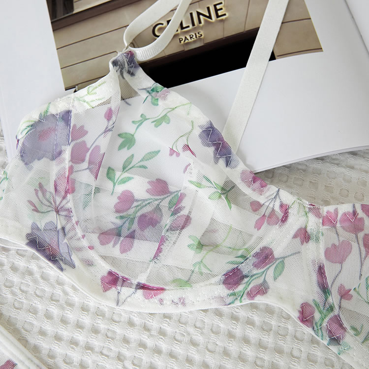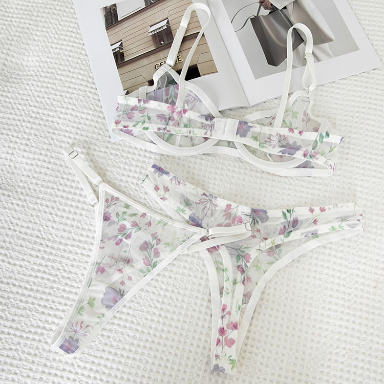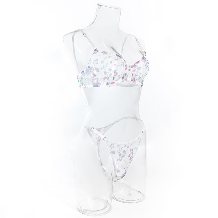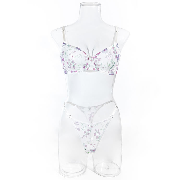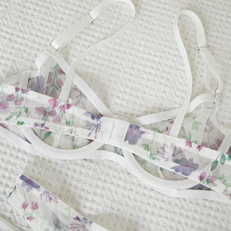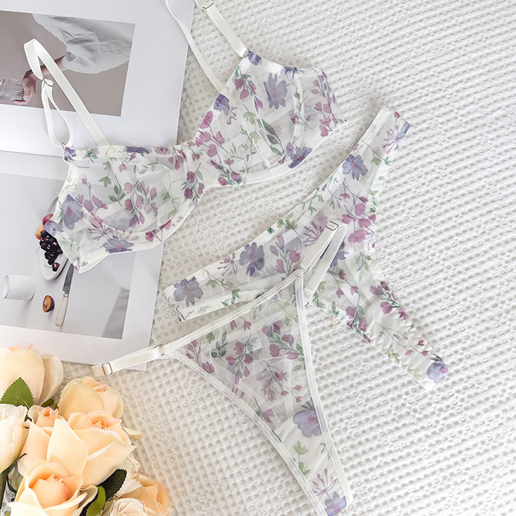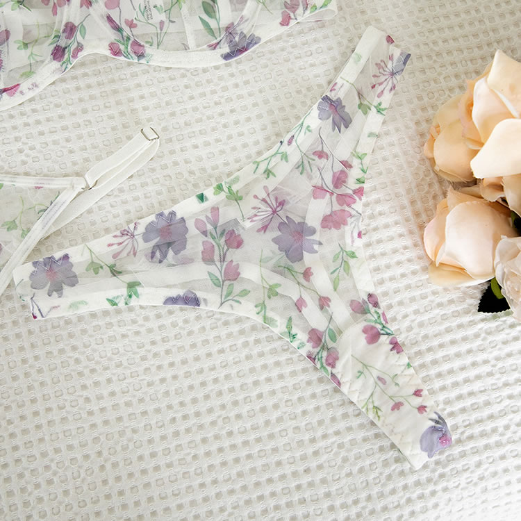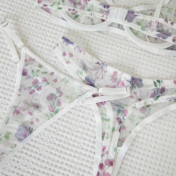 Embrace a touch of nature with this charming floral sheer lingerie set. The delicate flowers and leaves printed on the sheer fabric create a soft, romantic look that is both playful and alluring. The matching bra and panties are designed to enhance your natural curves, ensuring you feel confident and stylish.