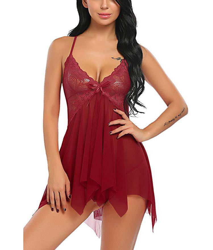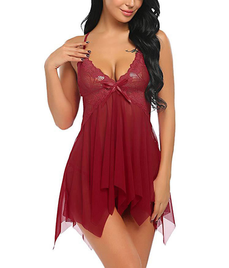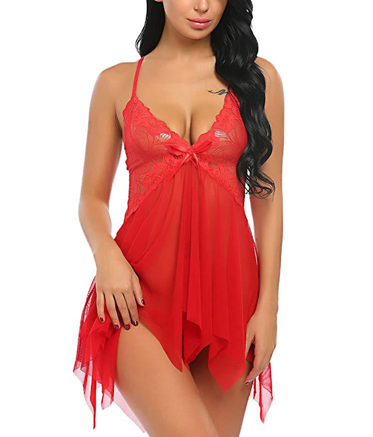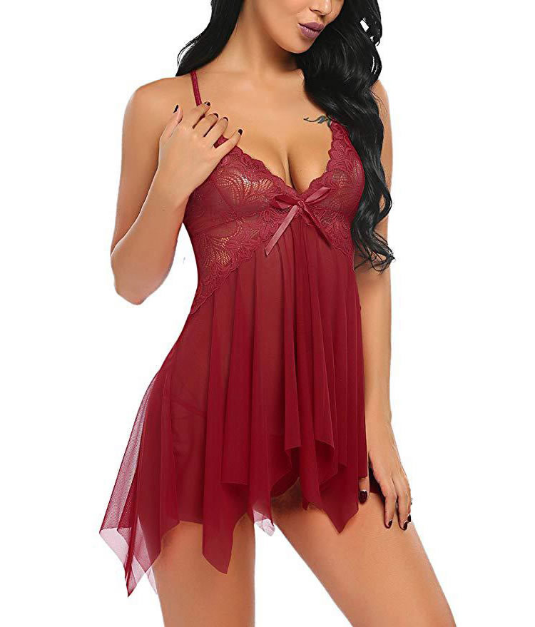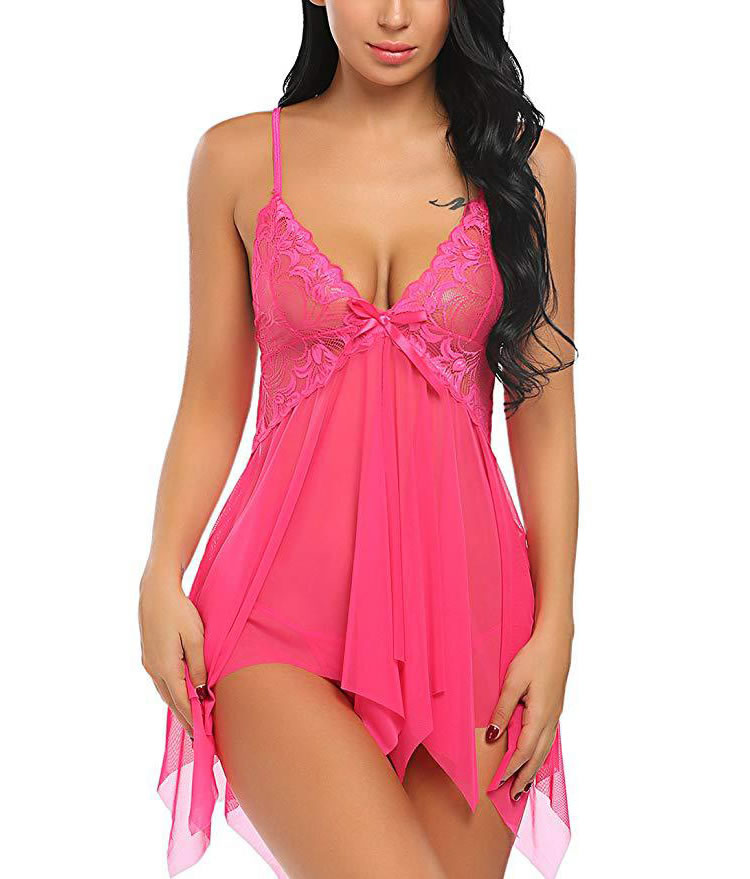 Elevate your lingerie collection with this charming lace chemise. The asymmetrical hemline adds a playful twist, and the delicate lace design ensures you feel both comfortable and glamorous. Ideal for anyone looking to add a bit of flair to their nightwear.