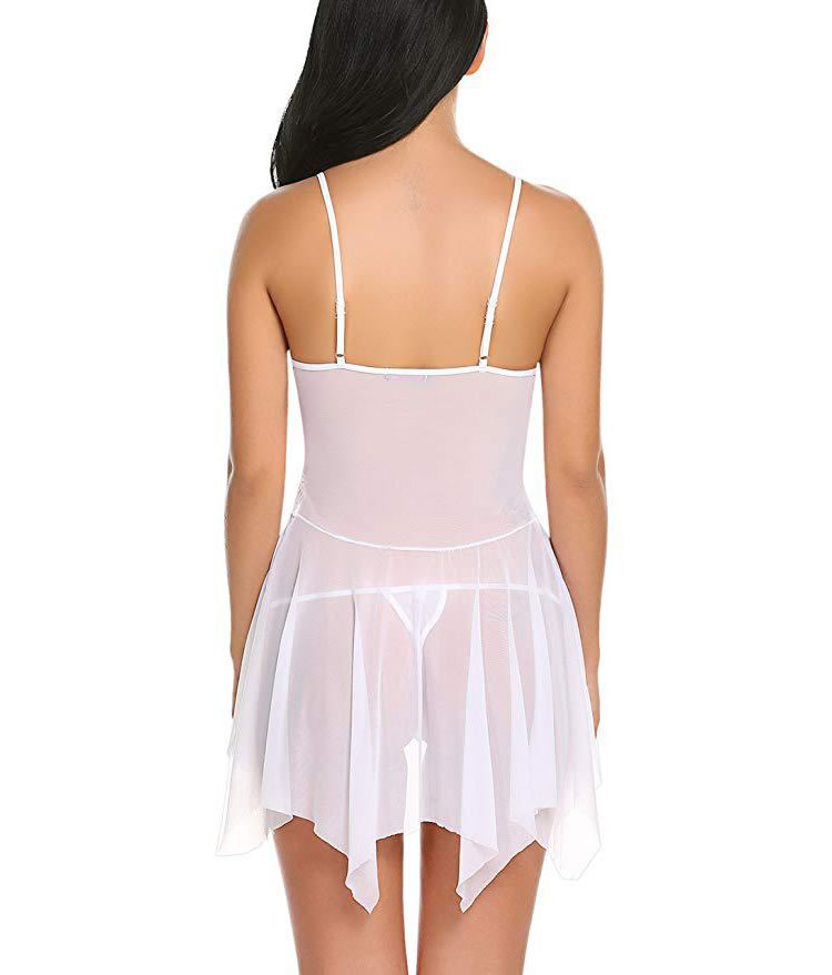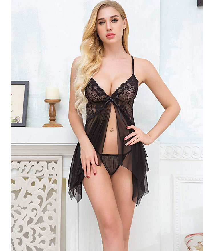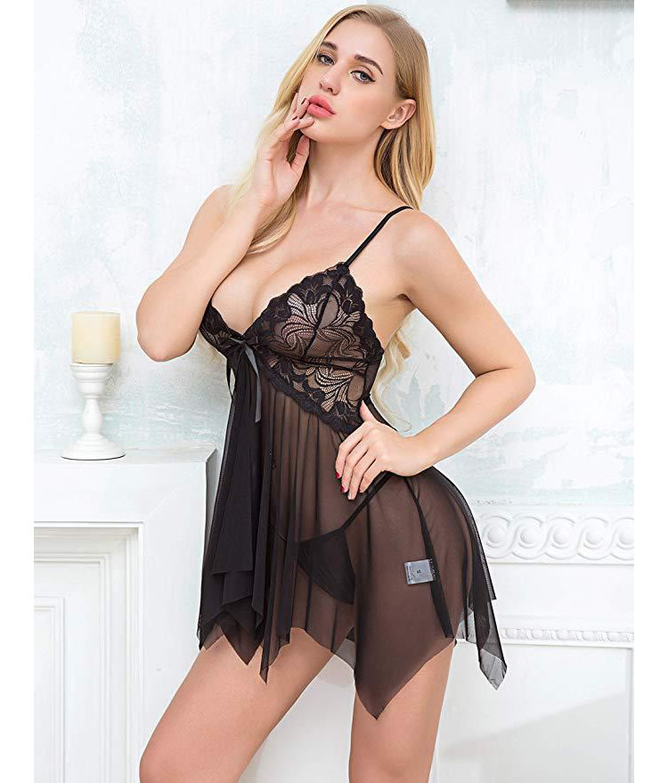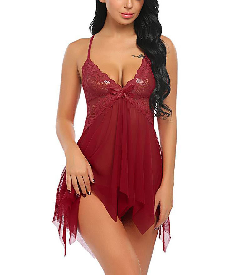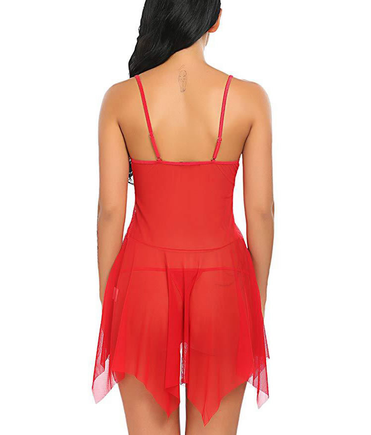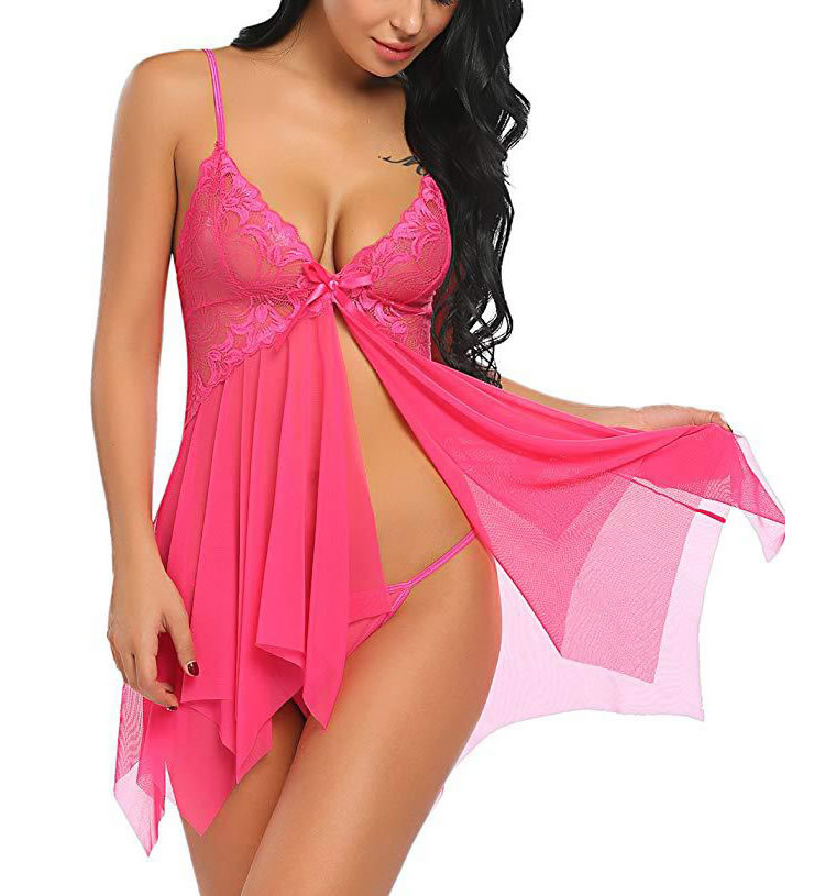Elevate your lingerie collection with this charming lace chemise. The asymmetrical hemline adds a playful twist, and the delicate lace design ensures you feel both comfortable and glamorous. Ideal for anyone looking to add a bit of flair to their nightwear.