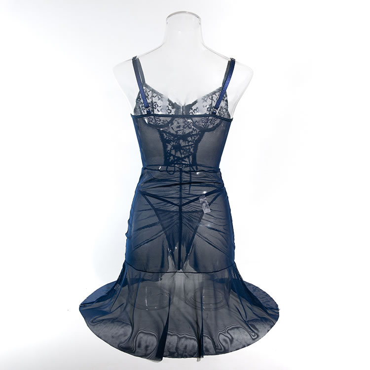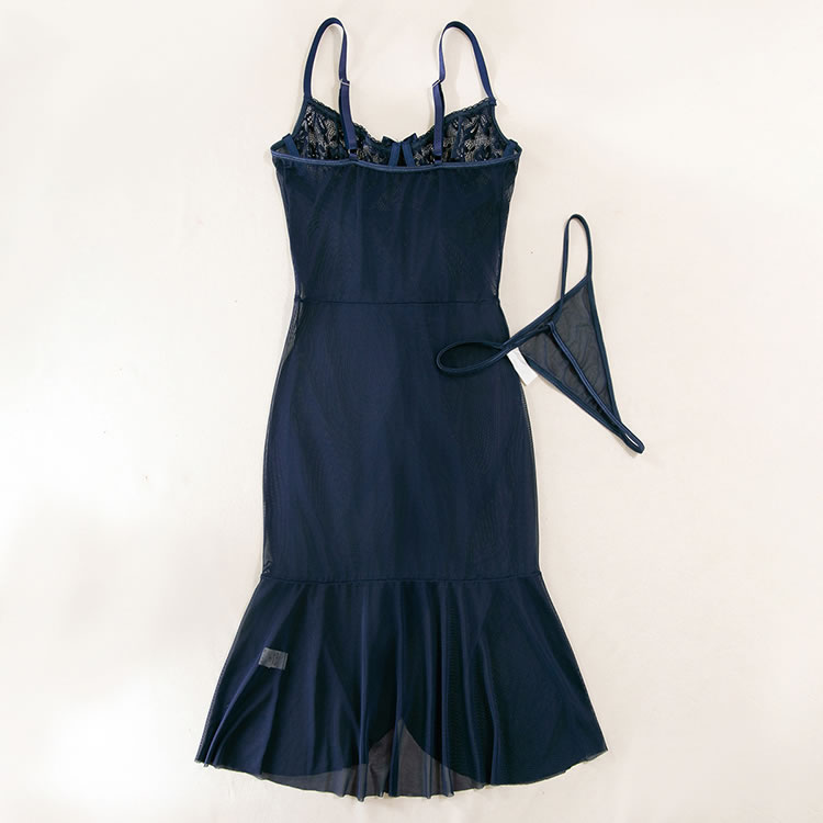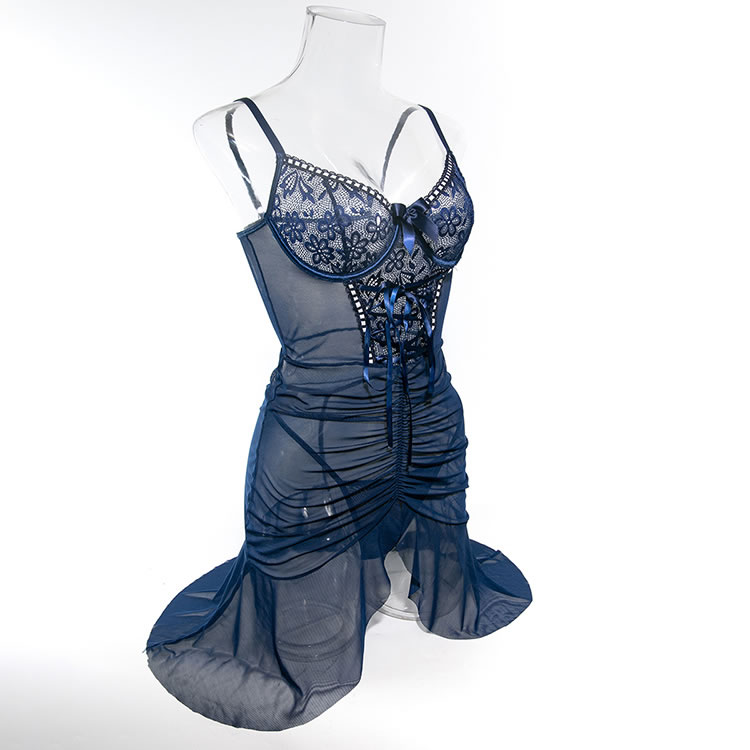 This stunning navy blue lace chemise is a perfect blend of elegance and allure. The bodice features intricate lace detailing with a bow accent, while the corset-style lacing adds a touch of vintage charm. The silky fabric ensures a comfortable fit, making it an ideal choice for those who want to feel both confident and stylish.
