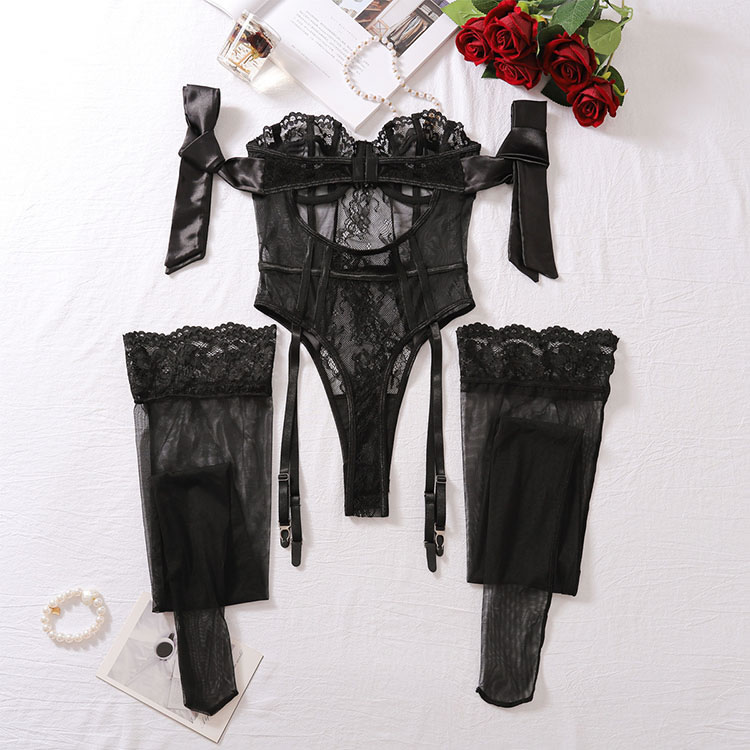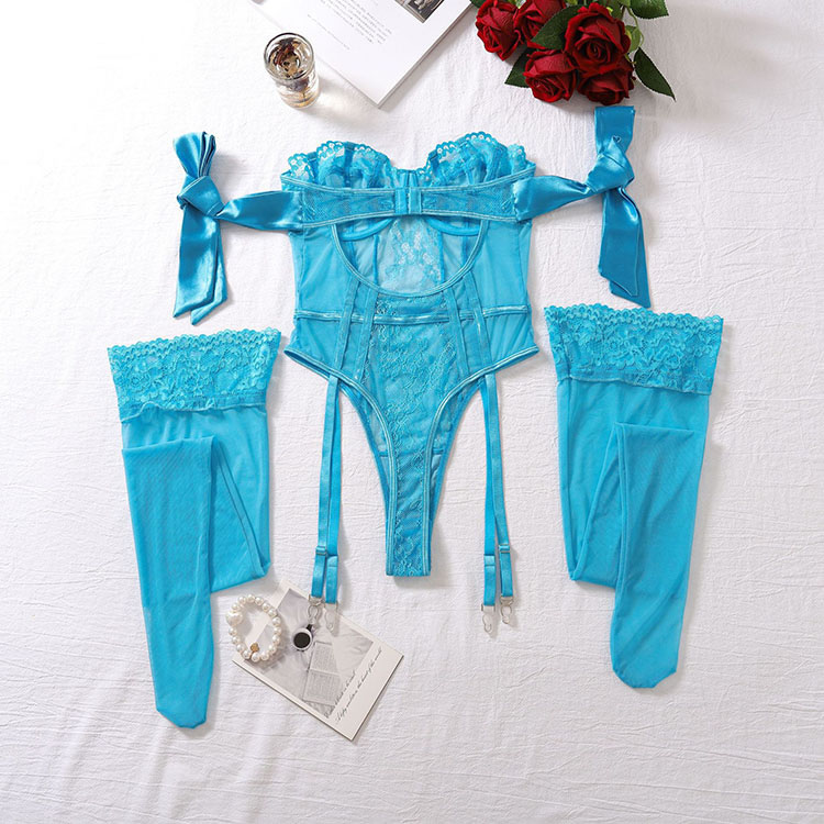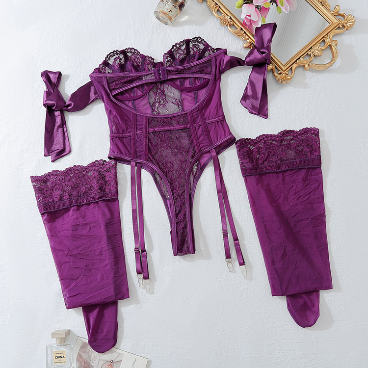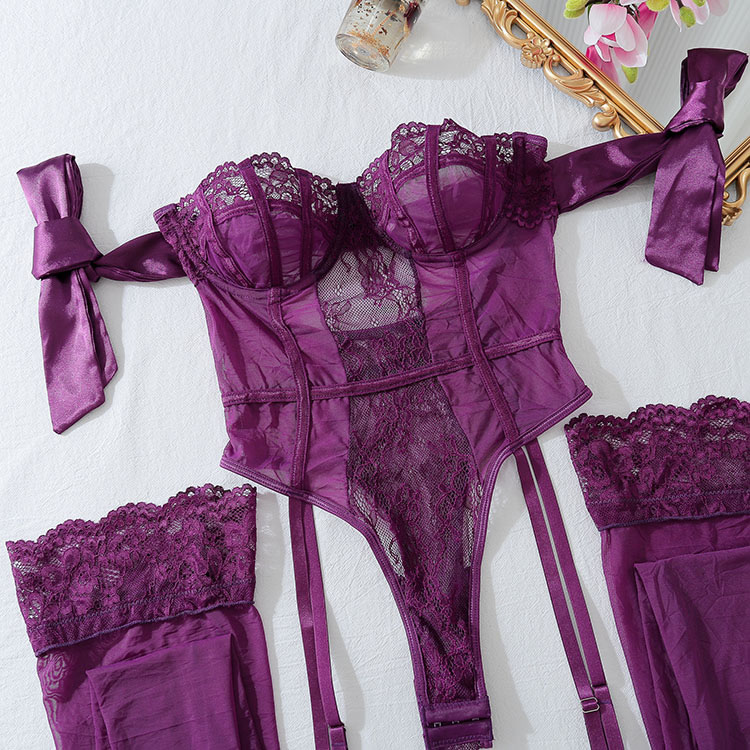 Charming Purple Lace Lingerie Set with Off-the-Shoulder Detail