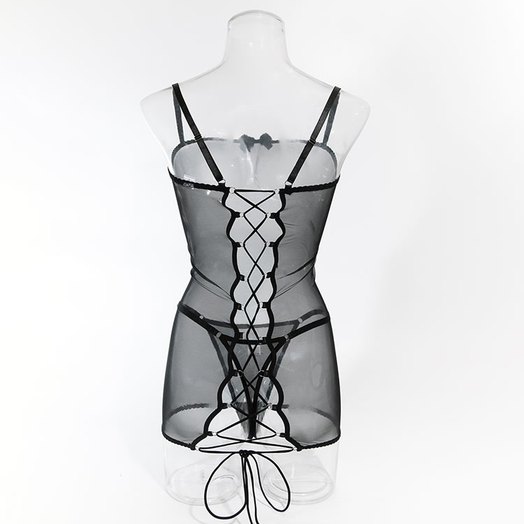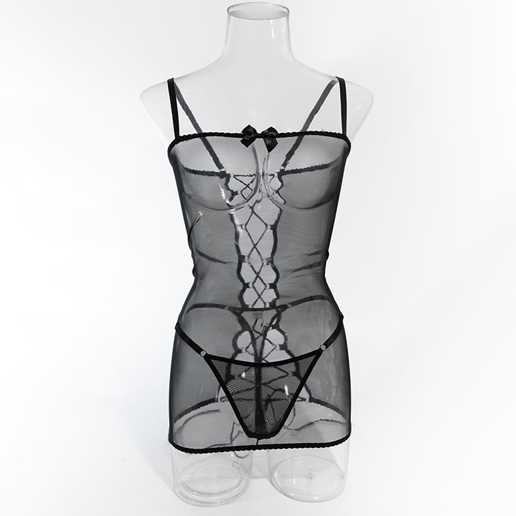 Elevate your intimate wardrobe with this elegant black sheer intimates set. The sheer mesh babydoll is crafted from soft sheer mesh, adorned with delicate mesh and a bow accent that adds a touch of glamour. The matching panties feature sheer mesh panels, ensuring both comfort and style. Ideal for both everyday comfort and romantic evenings.