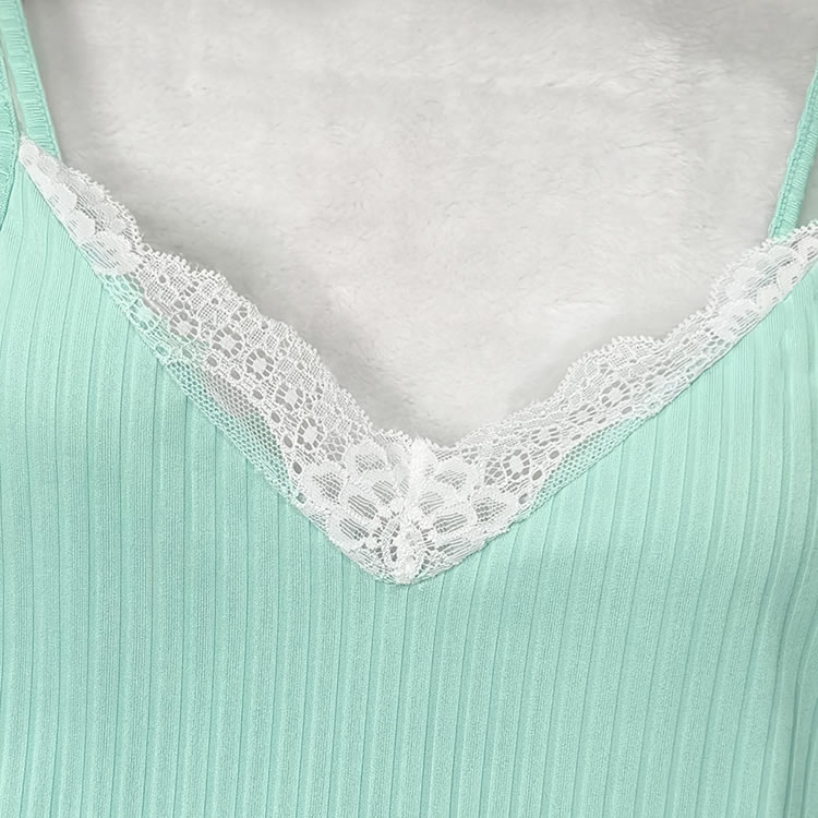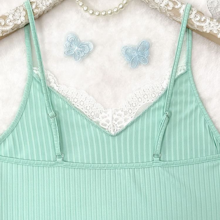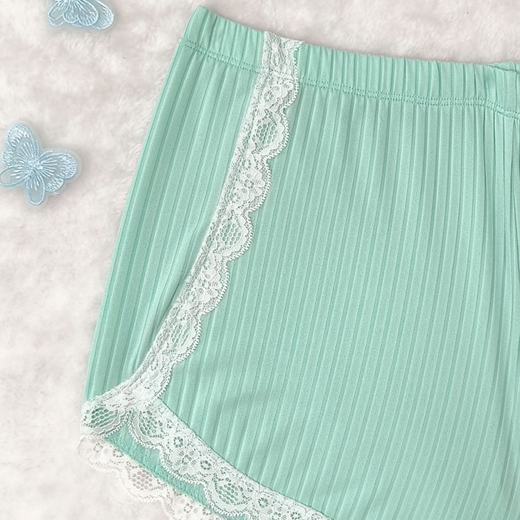 This mint green camisole and shorts set is the epitome of comfort and style. The soft, ribbed fabric ensures a snug fit that feels gentle against your skin. The delicate lace trim at the neckline and hem adds a touch of femininity, while the adjustable straps allow for a personalized fit. Perfect for relaxing evenings or lazy weekends, this set will keep you feeling fresh and stylish.