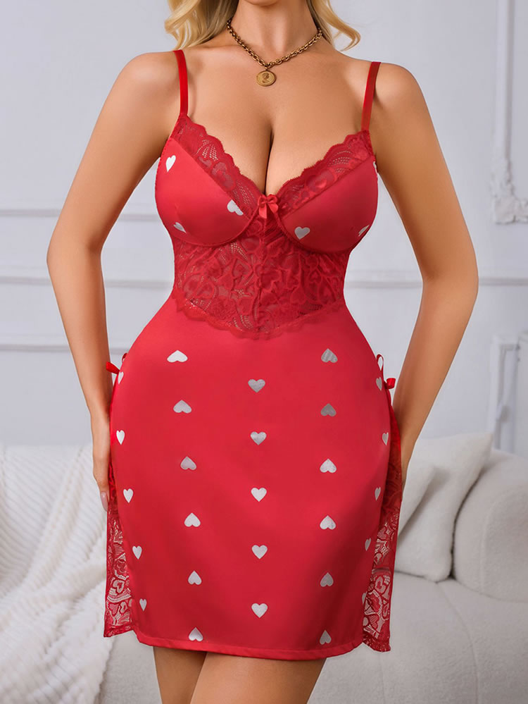 Embrace a touch of romance with this charming heart print babydoll set. The vibrant red color and delicate lace detailing create an enchanting look that is both alluring and playful. Perfect for special evenings or intimate moments, this set features adjustable straps and a flattering fit that accentuates your curves. The soft fabric ensures comfort, while the stylish bow adds a finishing touch of elegance.