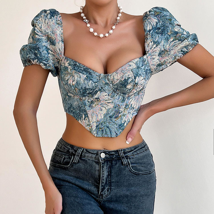 Experience the blend of romance and elegance with this floral corset top. The structured fit and beautiful floral print offer both comfort and style, making it a versatile piece for various occasions.