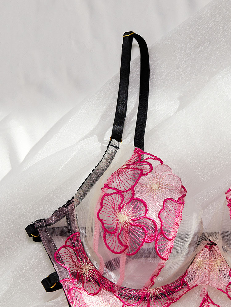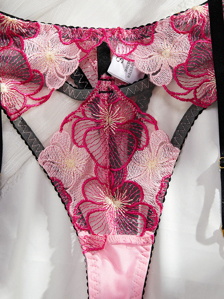 Indulge in the allure of this stunning lingerie set, designed with sheer lace panels that accentuate your curves. The vibrant floral embroidery adds a romantic flair, making it perfect for special occasions or everyday wear. Adjustable straps ensure a comfortable fit.