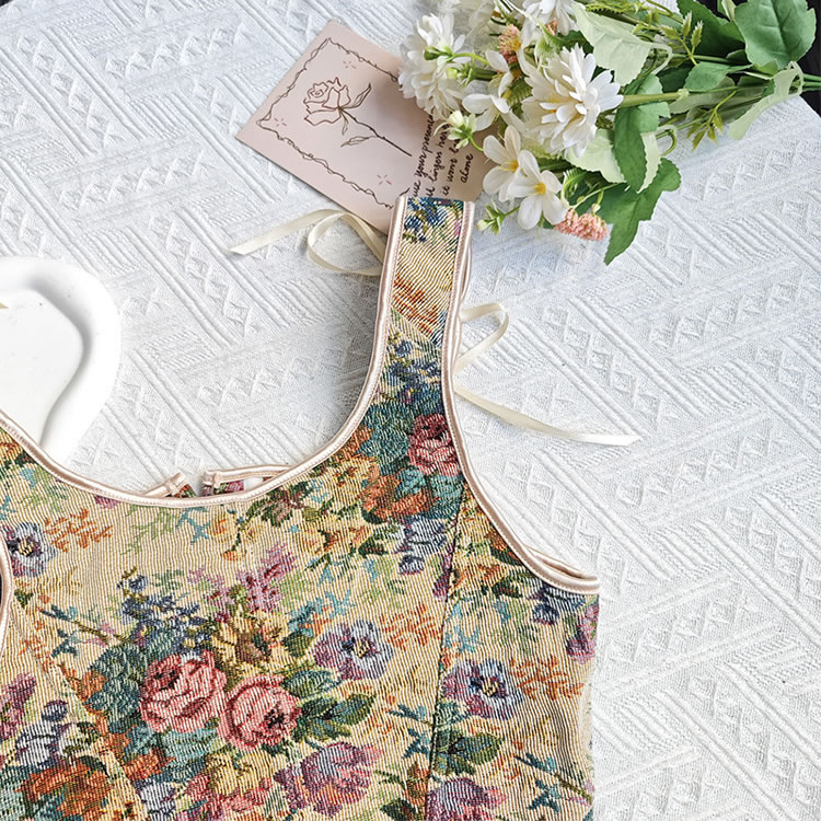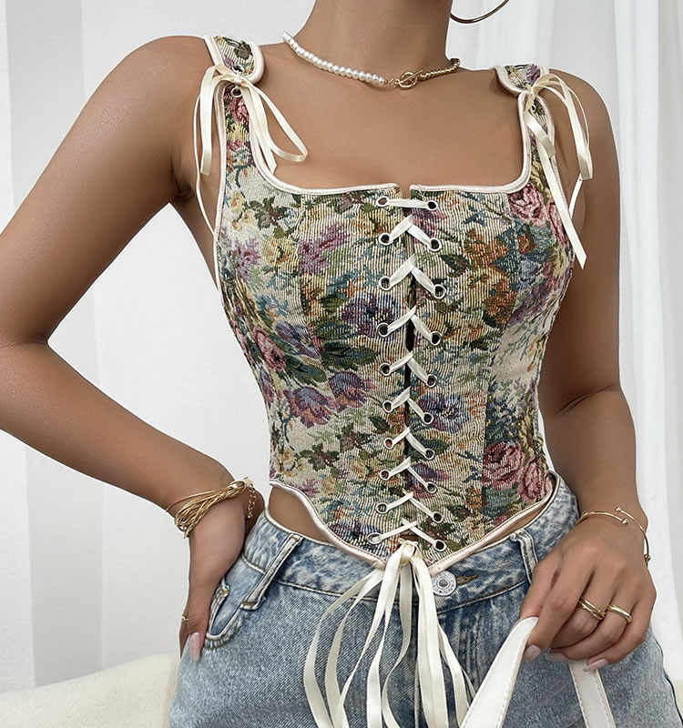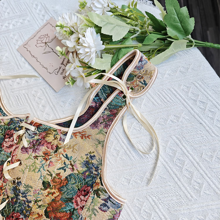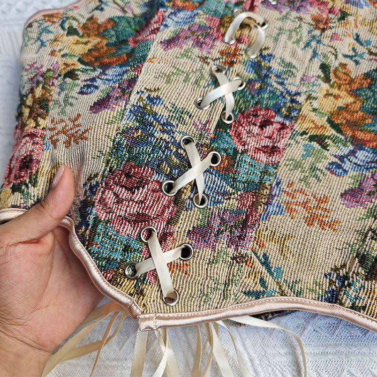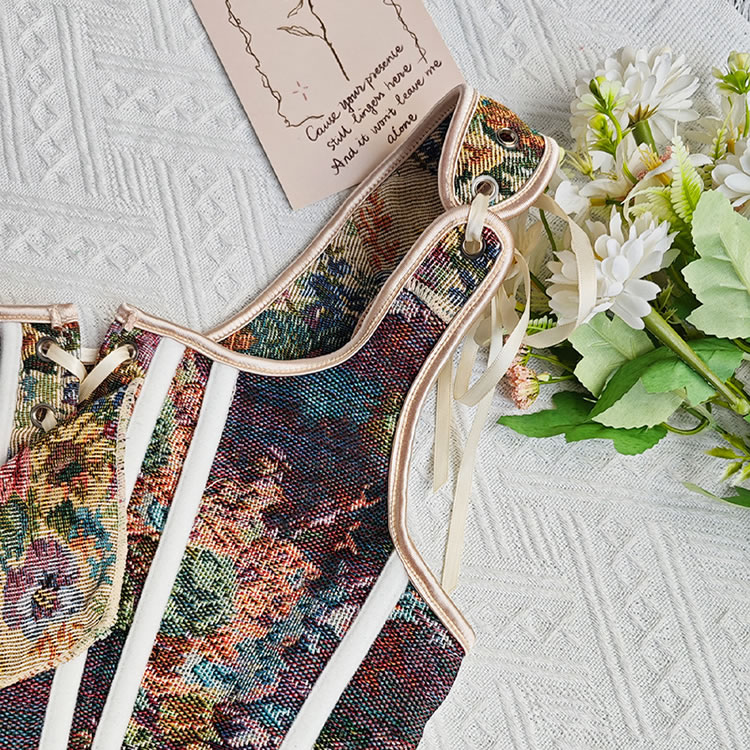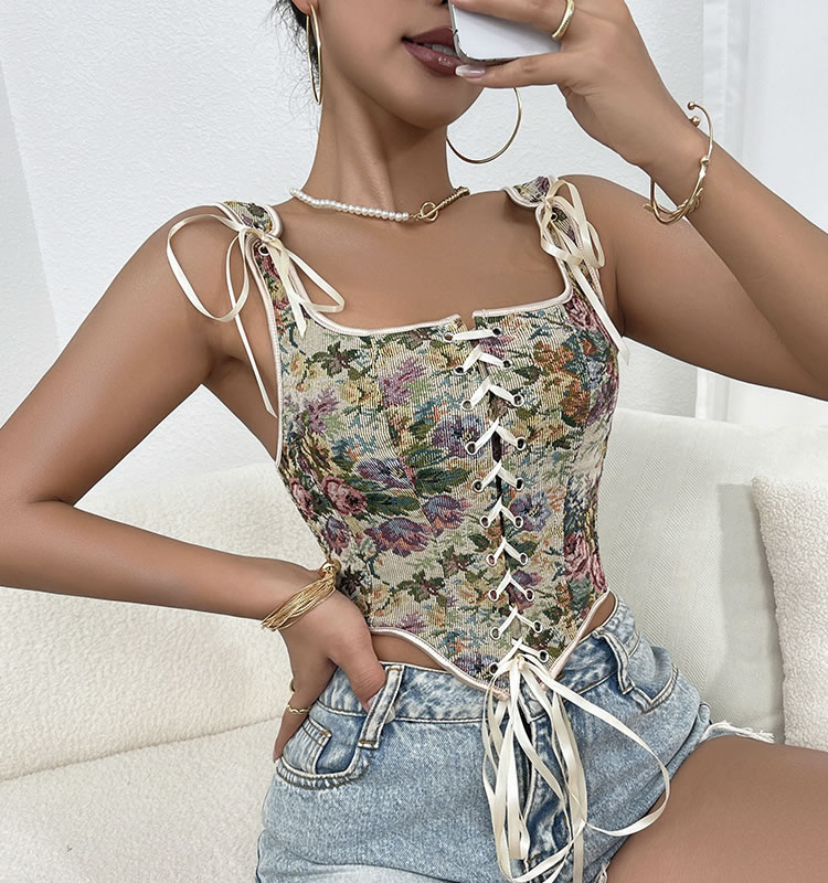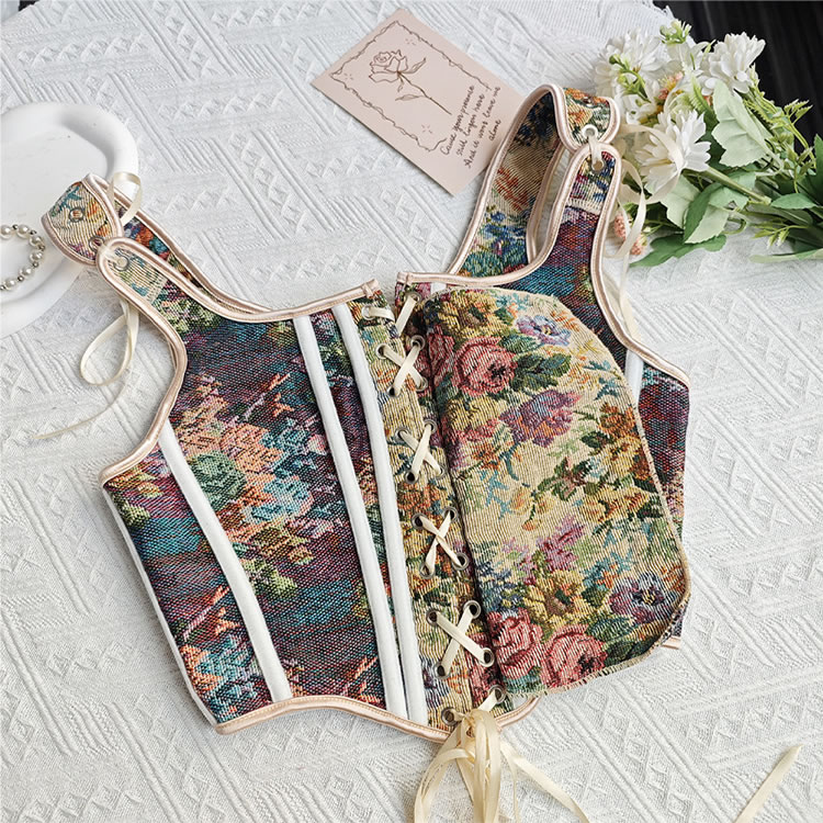 This captivating floral bustier lingerie set is designed to exude elegance and charm. The intricate floral pattern adds a touch of vintage sophistication, while the lace-up front enhances the overall allure with its adjustable fit. The fitted design accentuates the figure beautifully, making it perfect for both intimate moments and stylish outings. The adjustable shoulder straps ensure a comfortable and customizable fit, ensuring you feel confident and alluring.