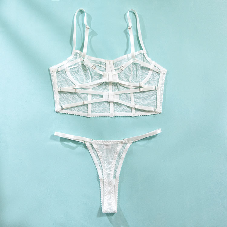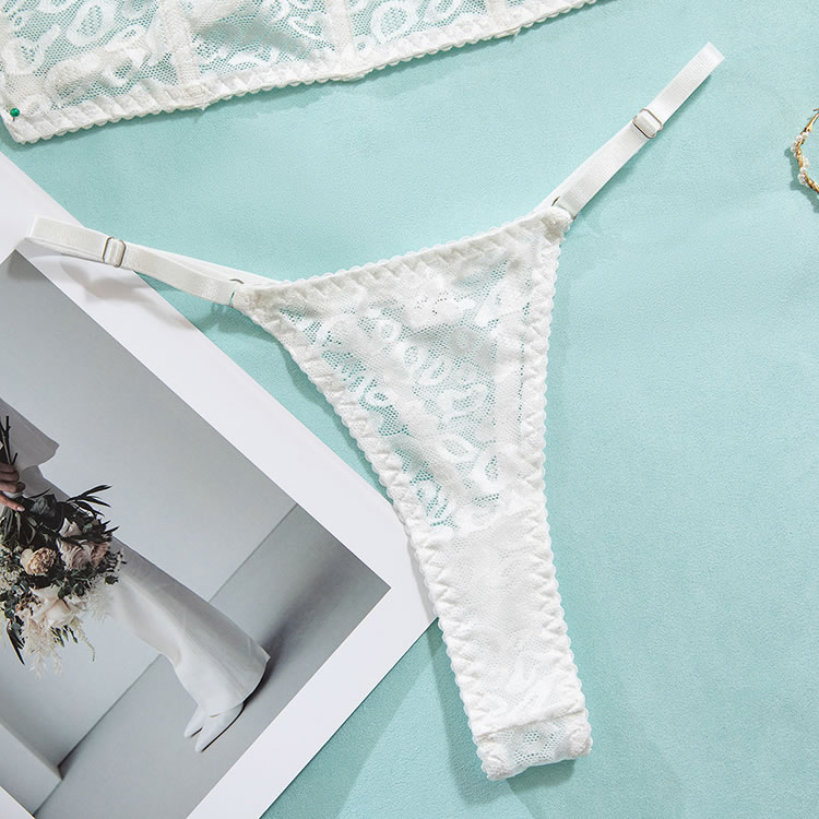 This exquisite lingerie set features a delicate lace design that exudes sophistication and femininity. The intricate patterns on the bra and thong create a visually stunning effect, while the soft fabric ensures all-day comfort. Perfect for special occasions or everyday wear, this set is designed to make you feel confident and stylish.