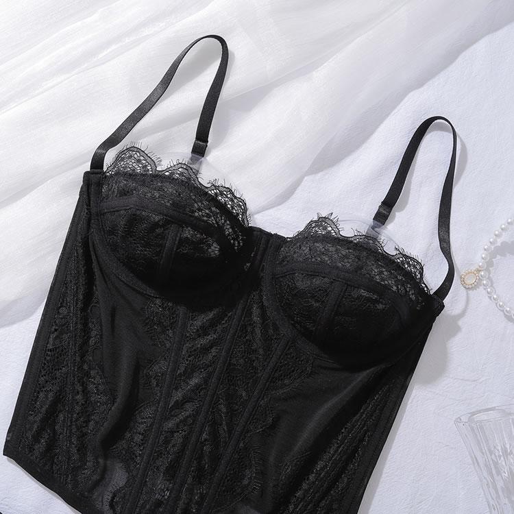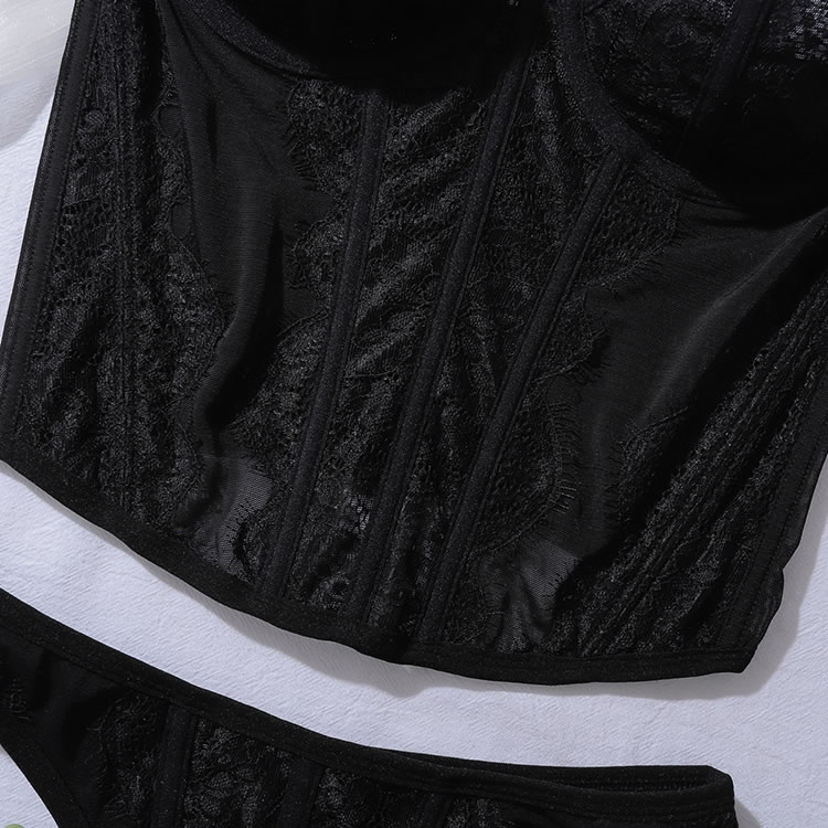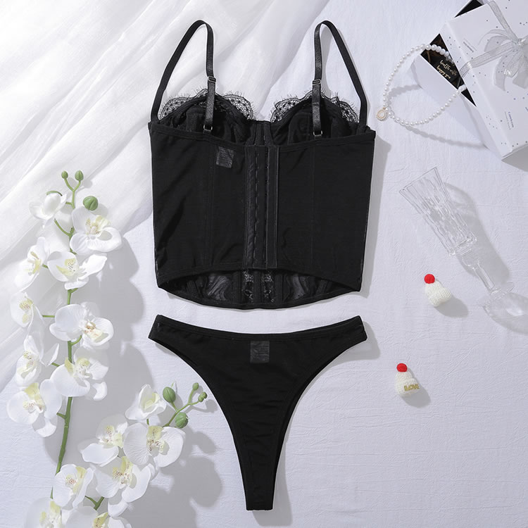 This exquisite corset set combines sheer fabric with intricate lace detailing to create a stunning silhouette. The adjustable straps and boned bodice ensure a perfect fit, while the delicate lace trim adds a touch of romance. Ideal for special occasions or as a confident everyday piece, this lingerie set is designed to enhance your natural curves.