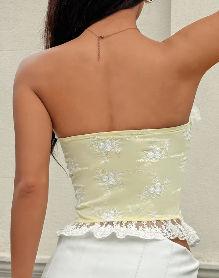 Embrace a classic yet modern style with this elegant yellow corset adorned with white flowers. The intricate lace-up front and floral embellishments create a stunning visual effect, while the comfortable fit ensures all-day wearability. Ideal for layering under jackets or as a standout piece, this corset brings a fresh and vibrant vibe to any outfit.