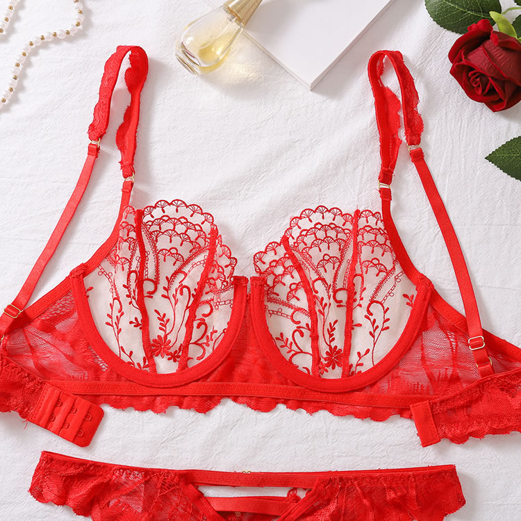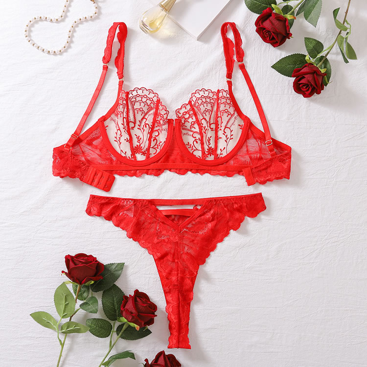 Elevate your essentials with this alluring bralette set, combining comfort, support, and sensuality. It features sheer mesh underwire cups with delicate embroidery, adjustable spaghetti straps for a customized fit, and a hook-and-eye back closure. The matching panty completes the set with a cheeky cut back, making it perfect for both everyday wear and special occasions.