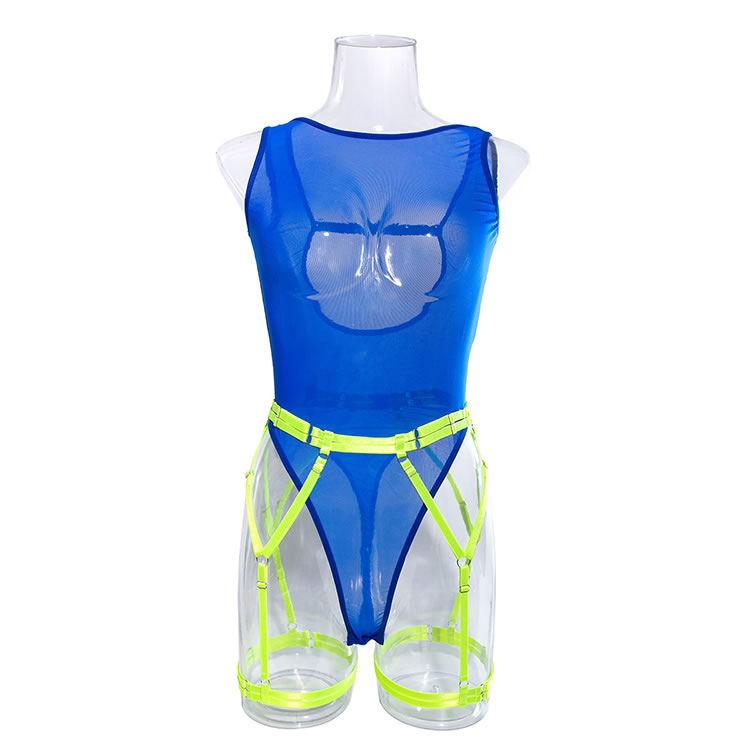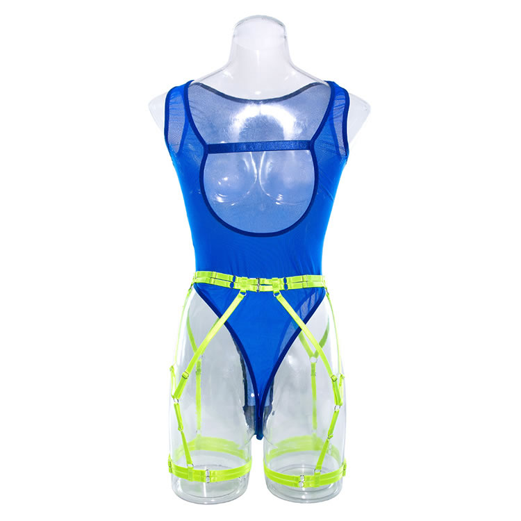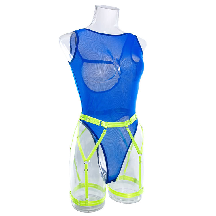 Get dressed up for a wild night of pleasure in this exclusive teddy featuring a high mesh neckline, a sheer mesh bodice, ultra high cut sides, a round keyhole back opening, a thong cut back, and a matching garter belt with adjustable garter straps, wraparound leg garters.
