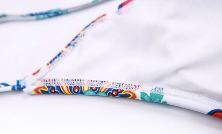 Mysterious and sexy, this exclusive one piece swimsuit features a V-neckline, an allover colorful paisley design, a halter strap with a criss-cross back, a strappy lace-up back with a tie closure, and a cheeky cut back.