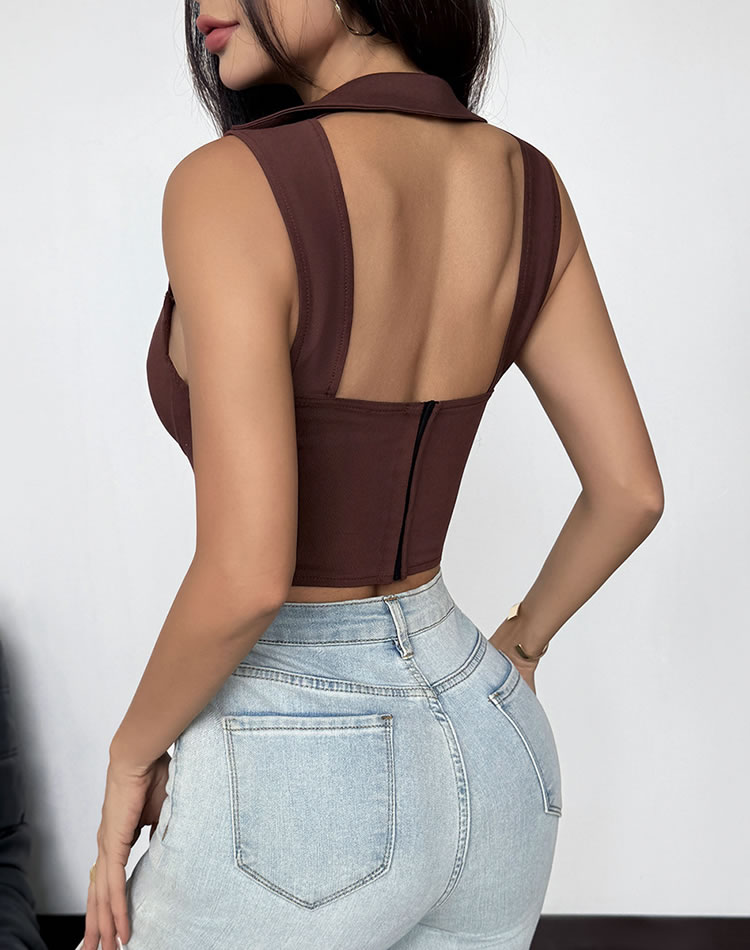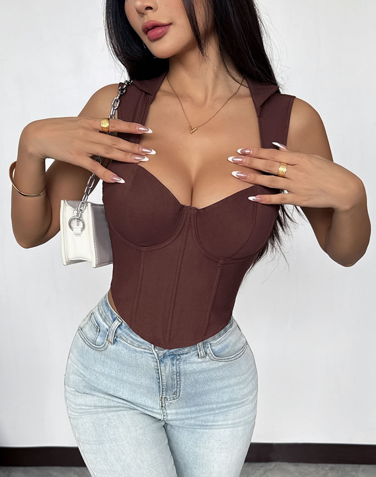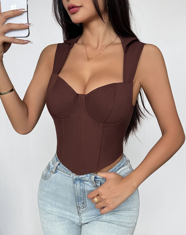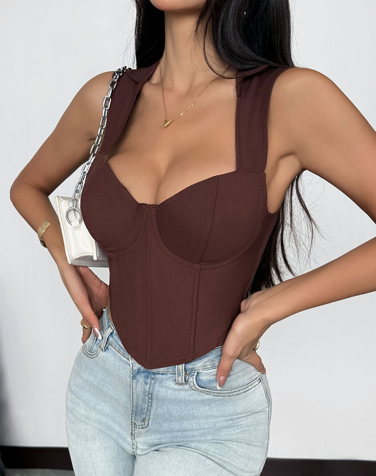 Elevate your wardrobe with this fashionable brown bustier. The structured bodice offers a flattering silhouette, enhancing your natural curves. With its simple yet elegant design, this bustier is easy to style and can be dressed up or down depending on the occasion. Ideal for those who appreciate timeless fashion pieces.