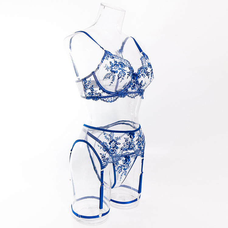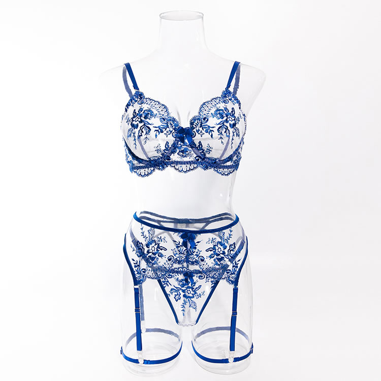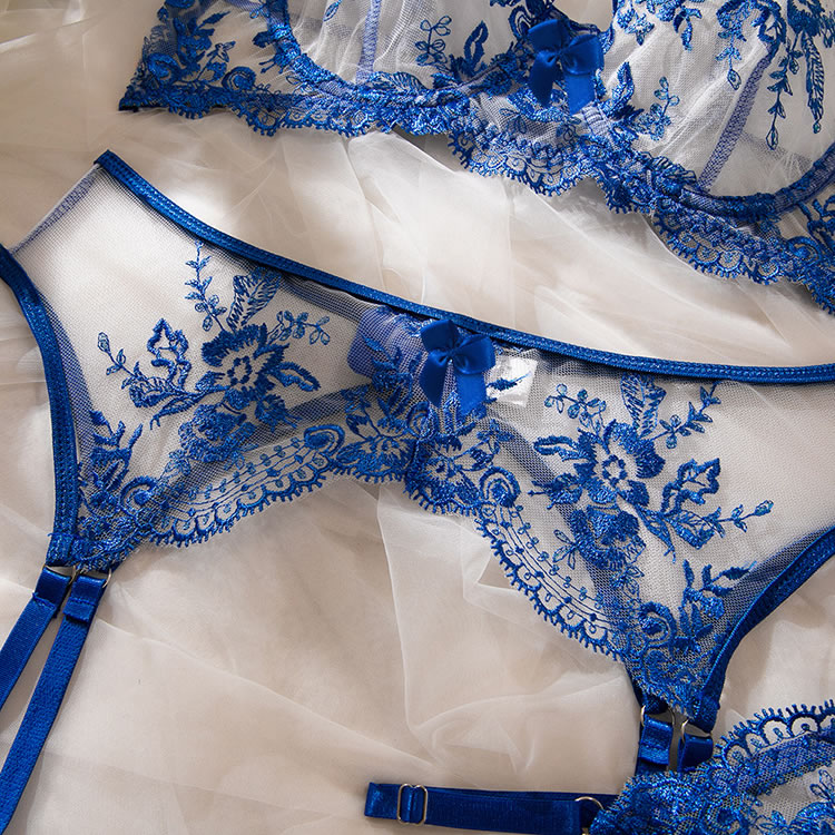 Introducing The Floral Embroidered Mesh Underwire Garter Lingerie Set: a Beautiful Fusion Of Elegance And Allure. This Set Features Intricate Floral Embroidery On Sheer Mesh, Complemented By Supportive Underwire And Garter Details. Perfect For Special Occasions, Feel Confident And Captivating In This Exquisite Ensemble.
