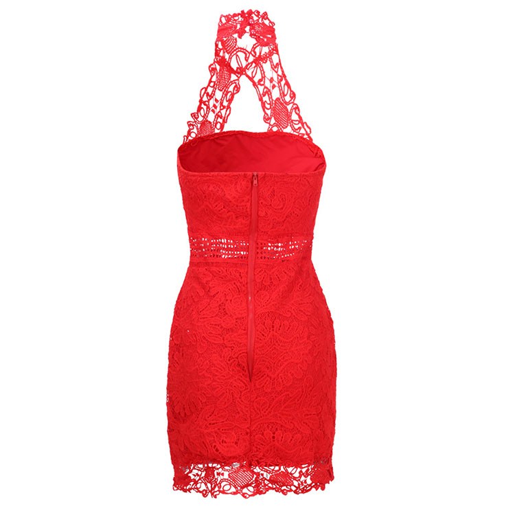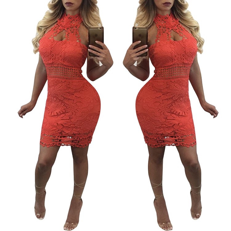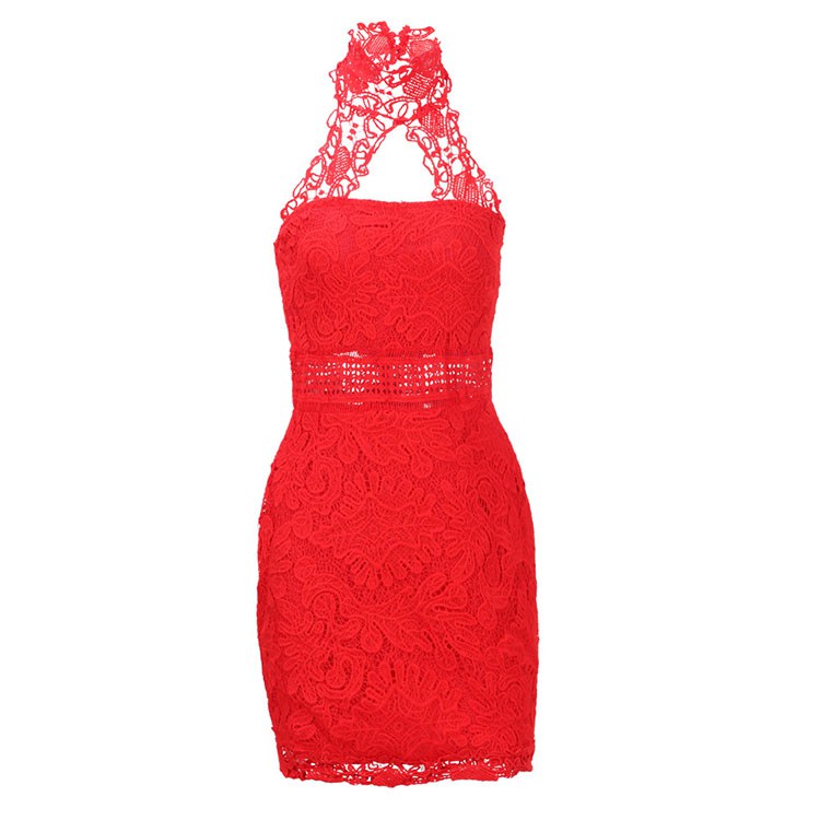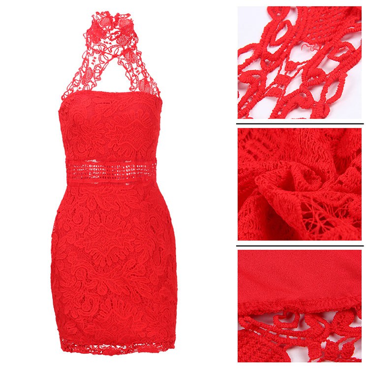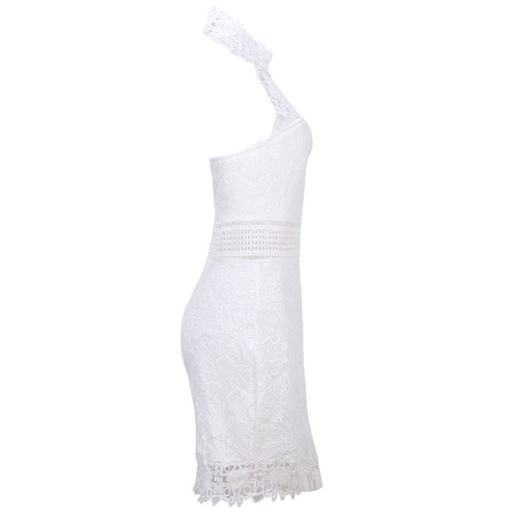 Sexy Lace Off Shoulder Halter Neck Above Knee Bodycon Dress