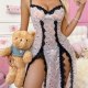 This elegant floral lingerie dress combines soft romance with bold allure. The sheer mesh fabric is adorned with delicate white floral patterns that create a dreamy, feminine look. Black lace trim outlines the bust, neckline, and side slits, adding contrast and structure. The high-cut sides feature long, flowing openings that enhance movement and confidence. Designed to hug your curves, it’s perfect for intimate moments or when you want to feel both sweet and daring.