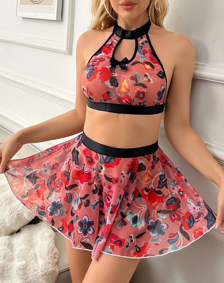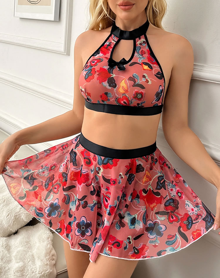 Introducing The Floral Print Contrast Mesh Lingerie Set: a Delightful Blend Of Floral Elegance And Allure. Featuring Contrasting Mesh Details, This Set Enhances Your Natural Beauty. Perfect For Special Occasions, Feel Confident And Enchanting In This Stylish Ensemble.