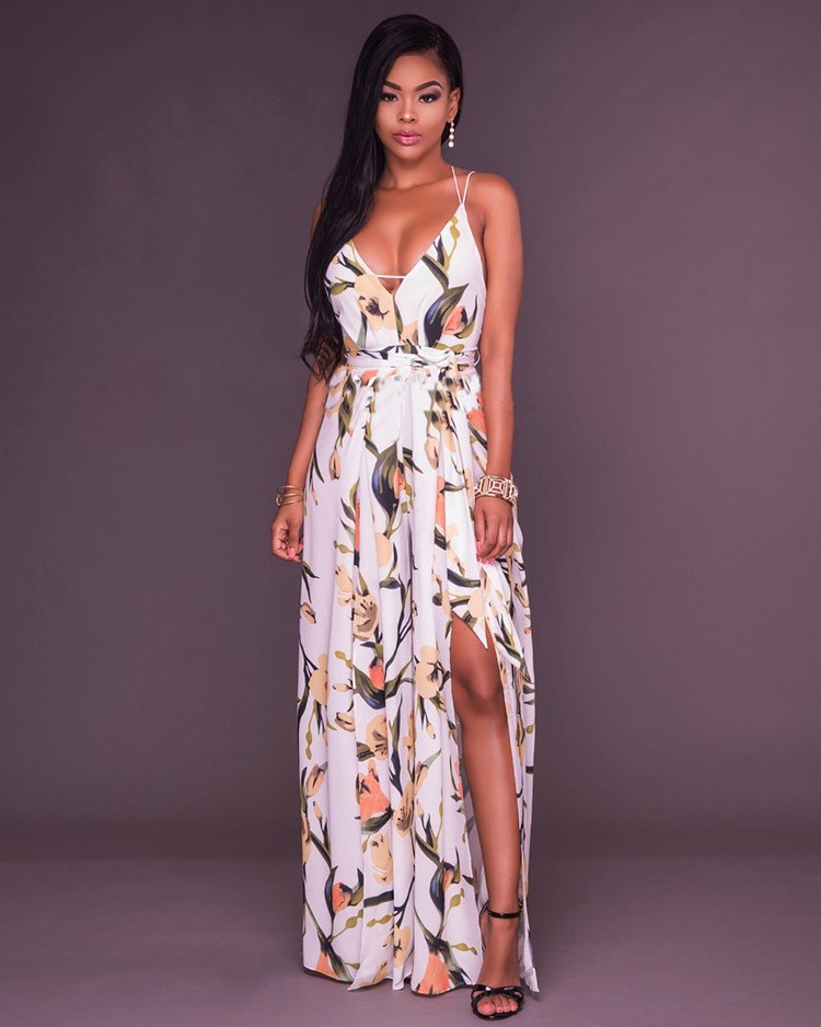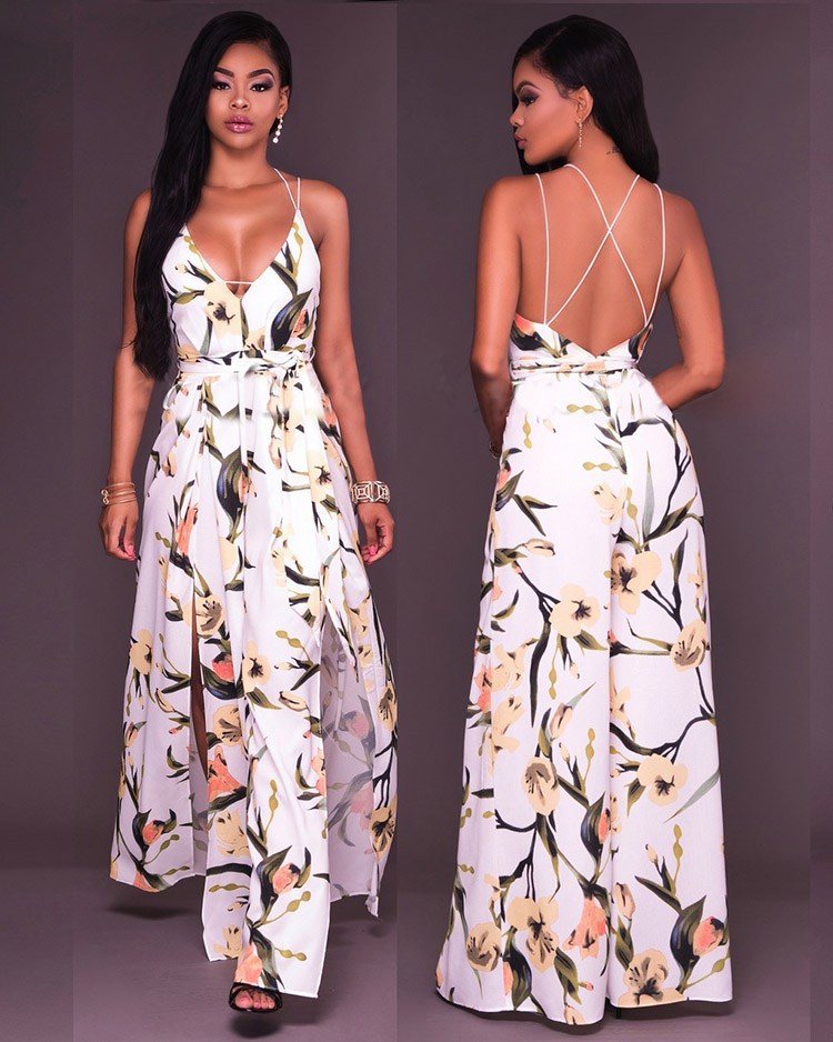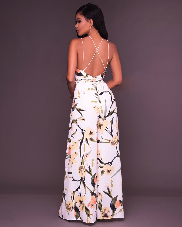 A vibrant floral pattern and a scrappy back dial up the statement-making allure of this stunning jumpsuit