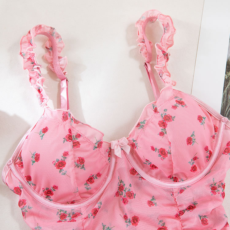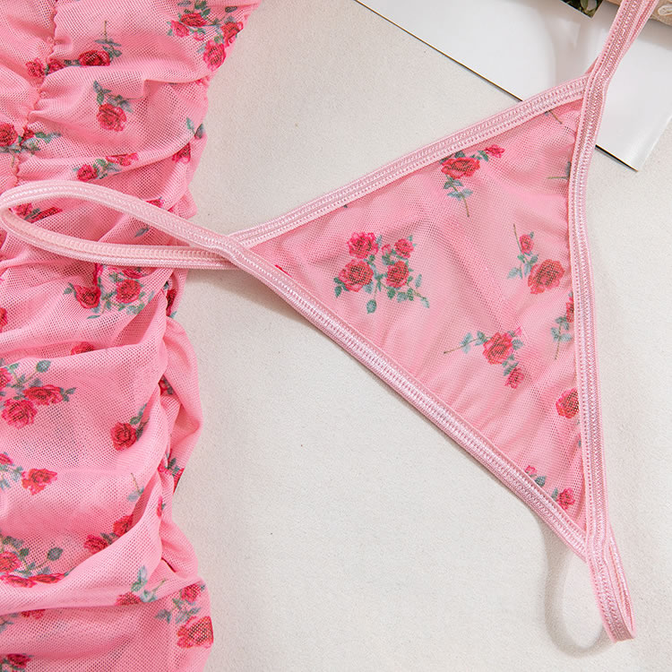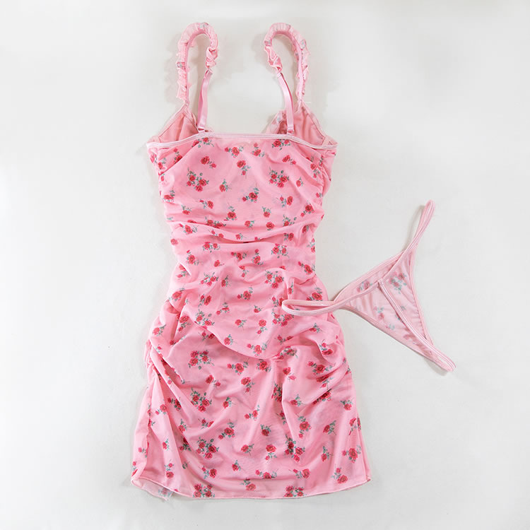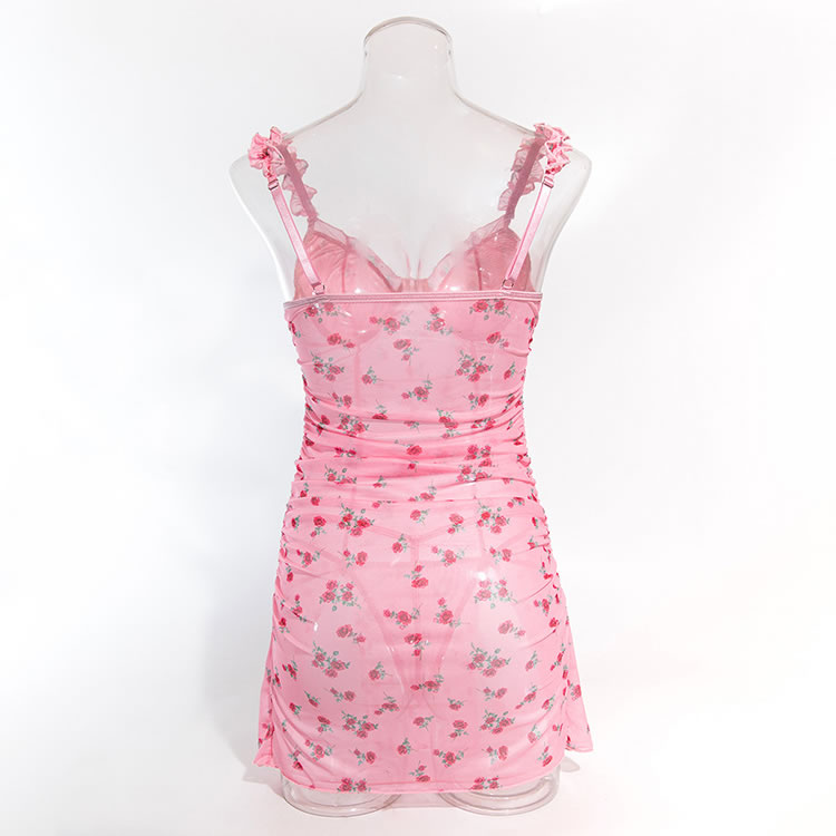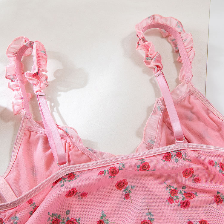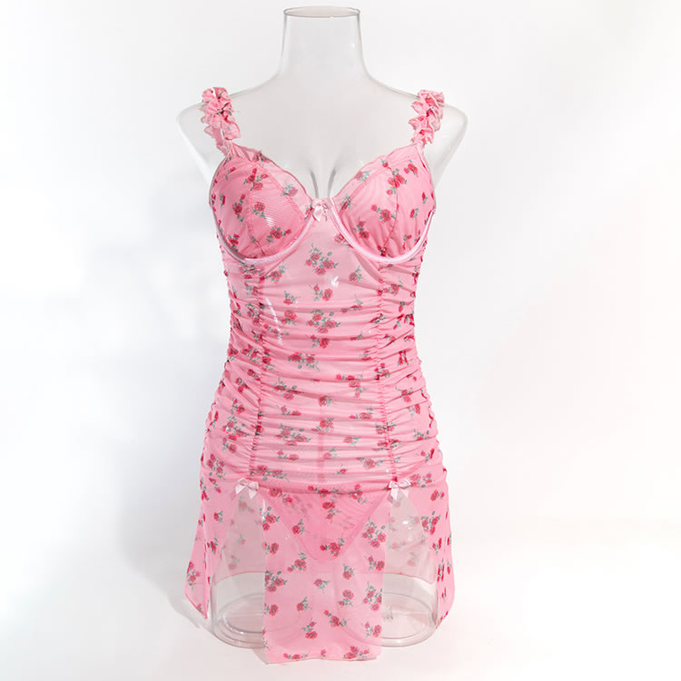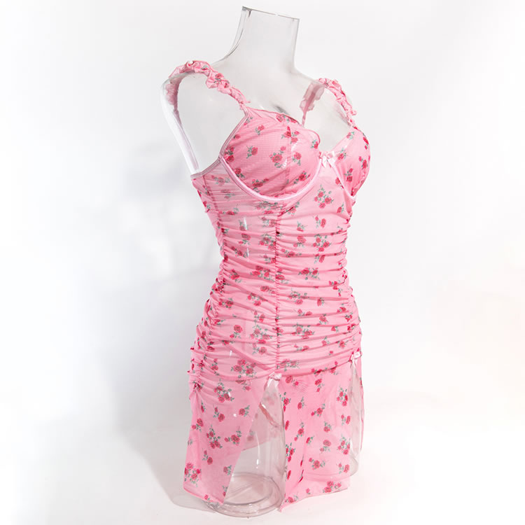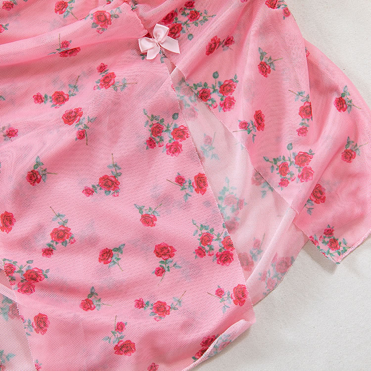 Step into romance with this pink floral nightgown. The dress boasts a charming sweetheart neckline adorned with soft ruffles and a bow detail, enhancing its allure. The floral pattern and ruched design offer both style and comfort, ensuring you feel confident and beautiful whether lounging or sleeping.