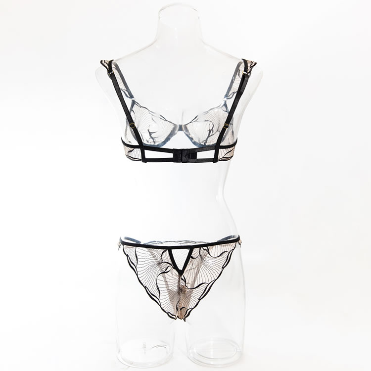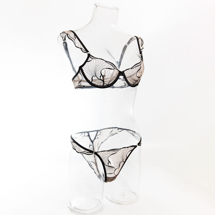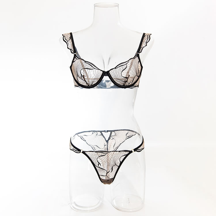 This black lingerie set features a sheer, intricate design that exudes elegance and sophistication. The delicate lace detailing on the bra and panty creates a visually stunning effect, while the soft fabric ensures all-day comfort. Perfect for adding a touch of allure to your wardrobe.