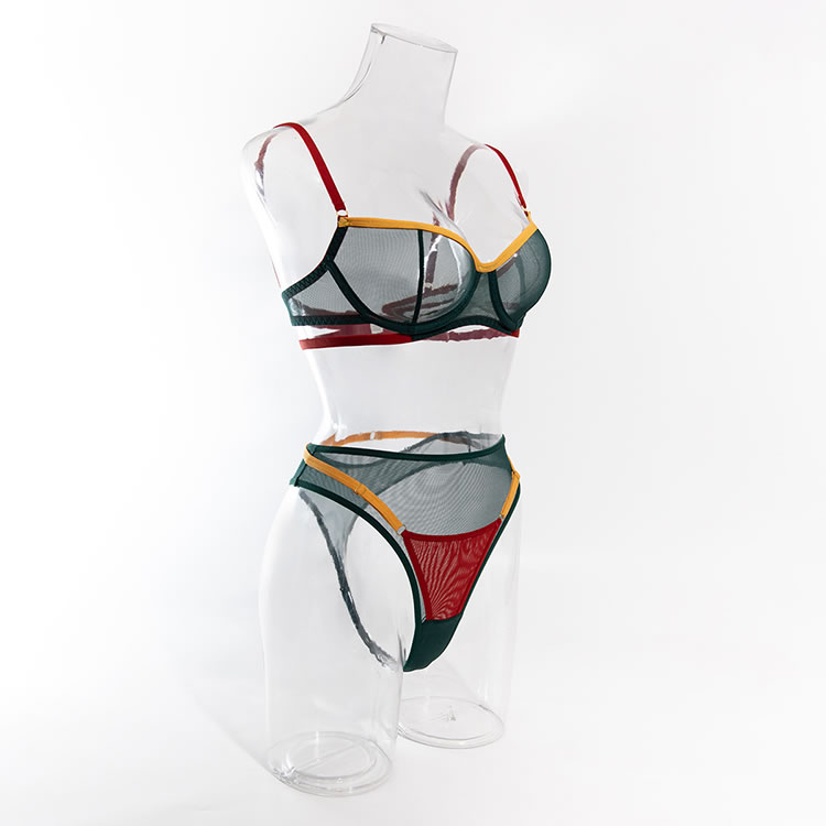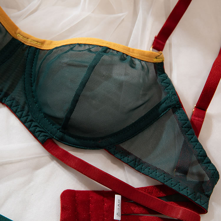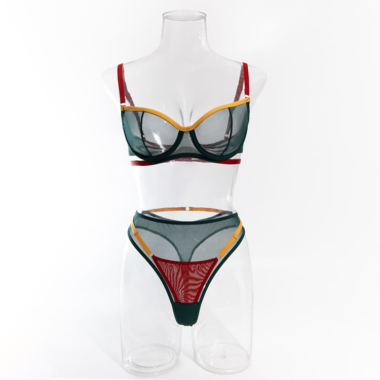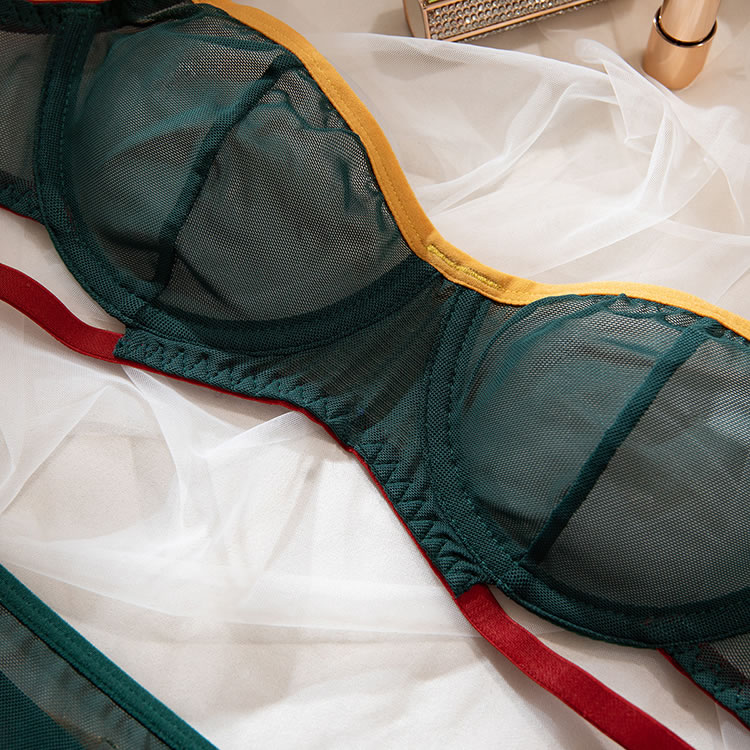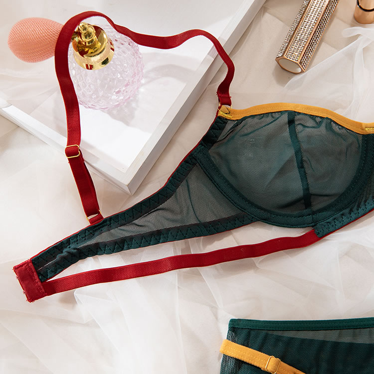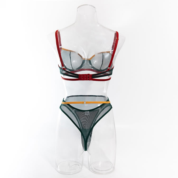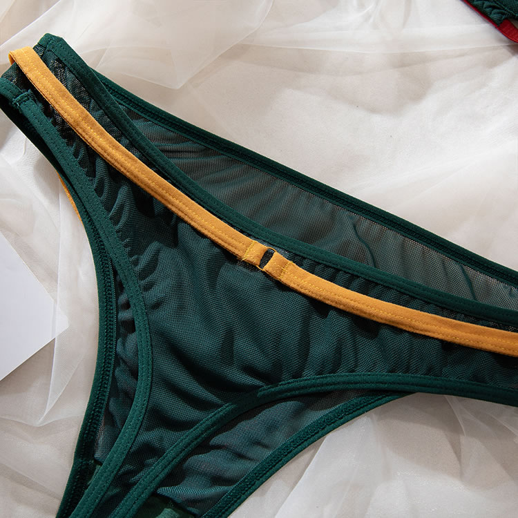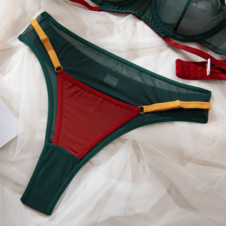 Make an irresistible offer with this enticing lace bra set, available in green. This two-piece ensemble features an underwire bra with adjustable spaghetti straps and a hook and eye back closure, paired perfectly with a thong bottom to enhance your allure.