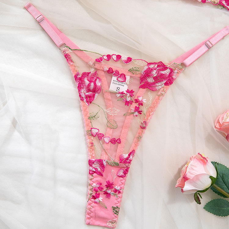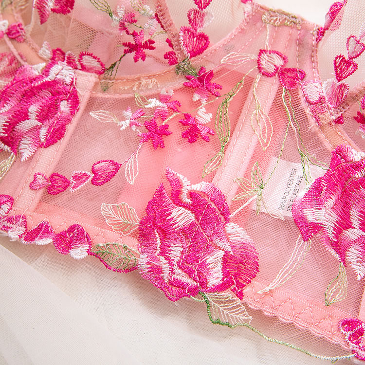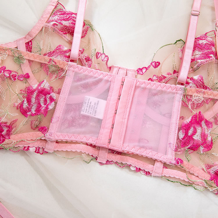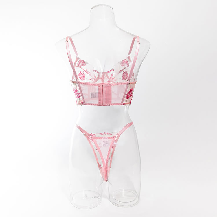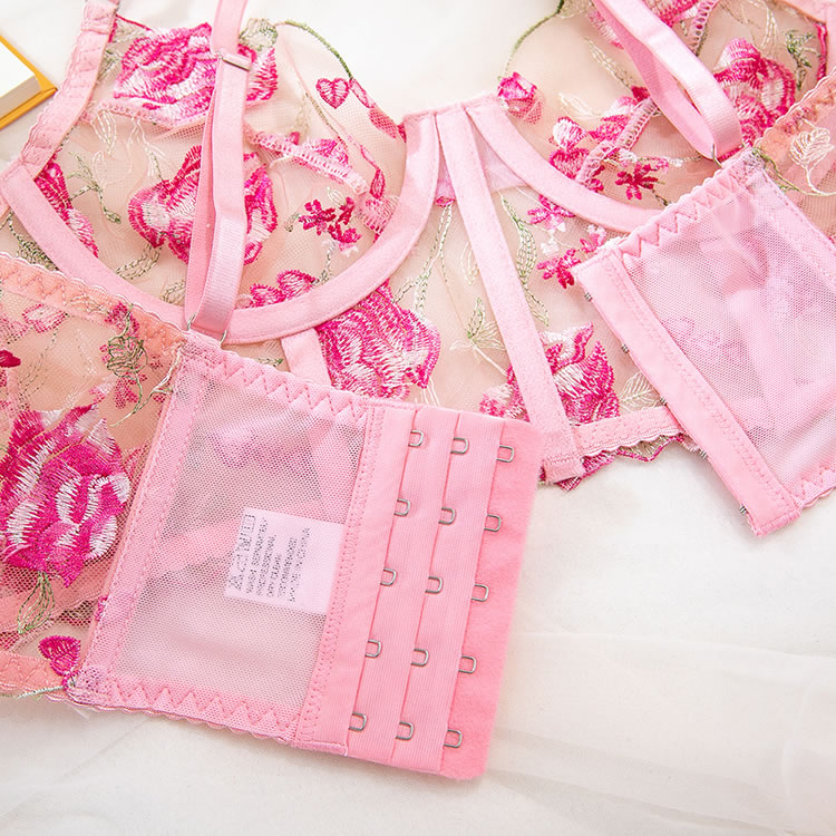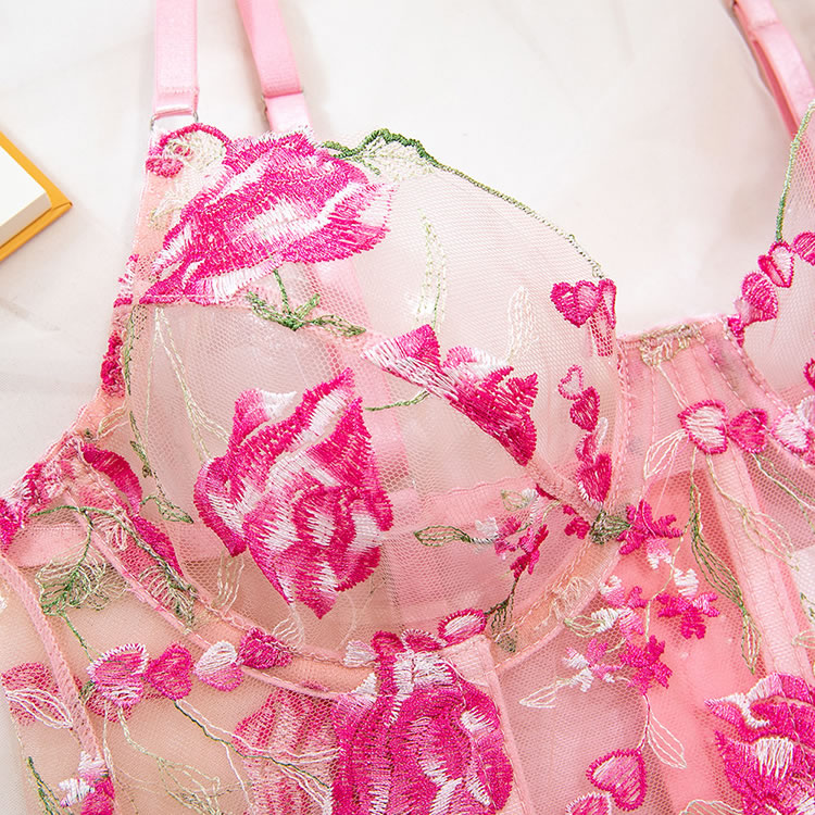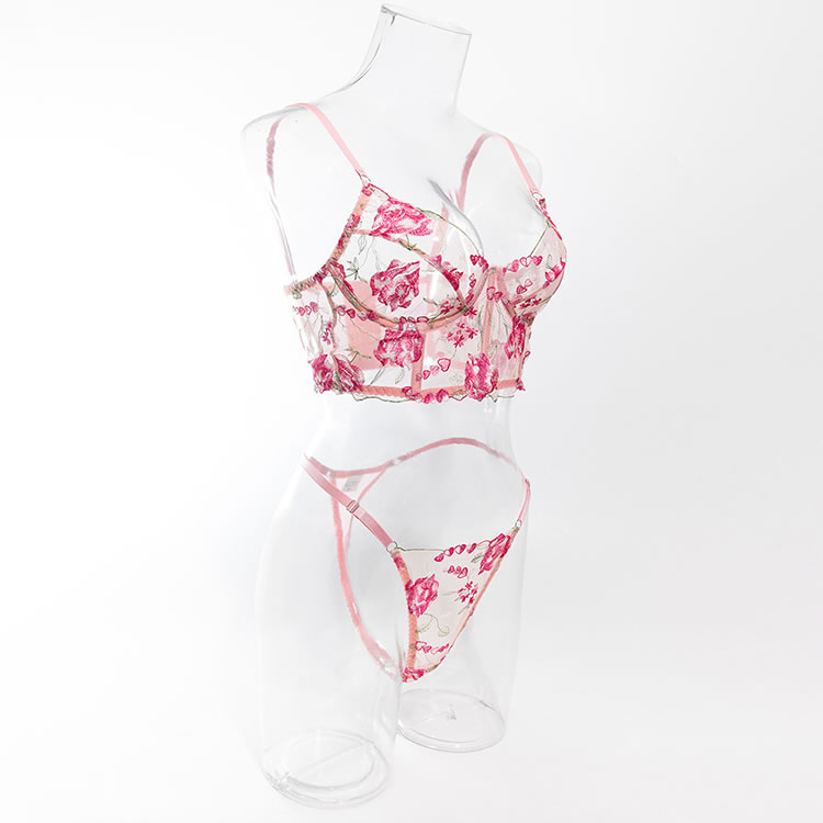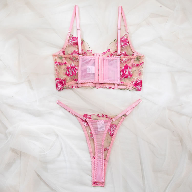 Add a playful touch to your lingerie collection with this flirty lace bra set, available in pink. This corset bra and panty set features adjustable straps, underwire support, and a hook-and-eye back closure, paired with a matching thong panty. Perfect for brightening up your intimate wardrobe.