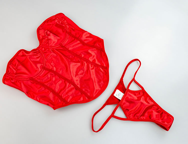 Show your partner the heat of your love in this sexy bustier set featuring a sweetheart neckline, removeable adjustable spaghetti straps, a matching thong, and a matching Thigh high stockings.