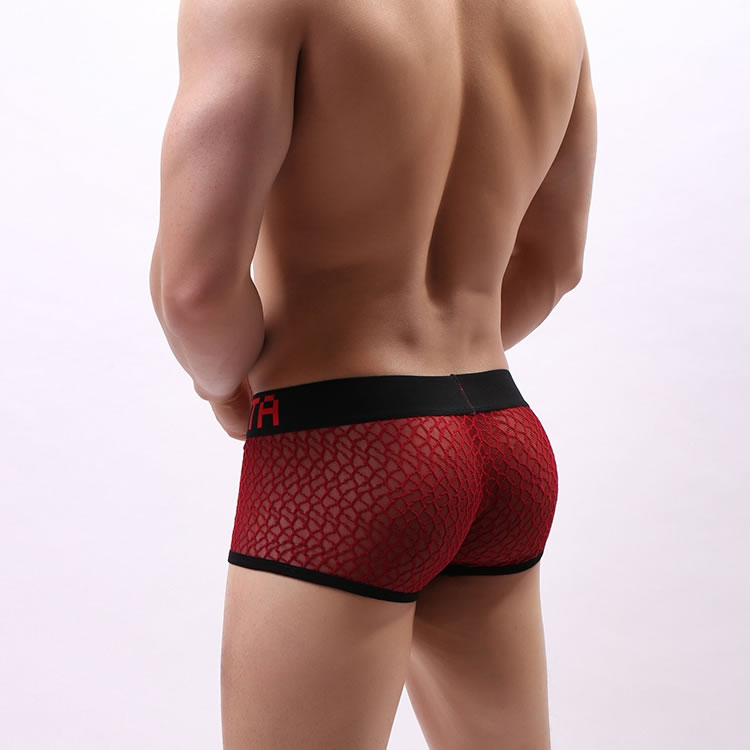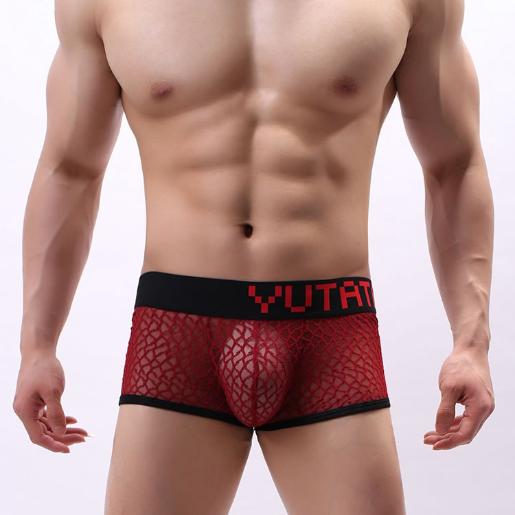Low Waist Shorts Boxers for Men Sexy Sheer Fishnet Lingerie Transparent Underwear Nightwear Sleepwear
